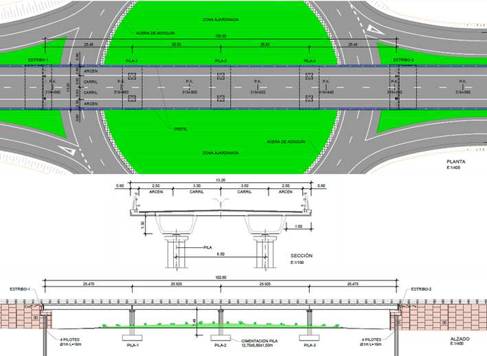 Dicha conexión contará con una intersección a nivel con tipología de glorieta cerrada, con un diámetro exterior de 60 metros y una calzada anular de 9 metros de ancho.
