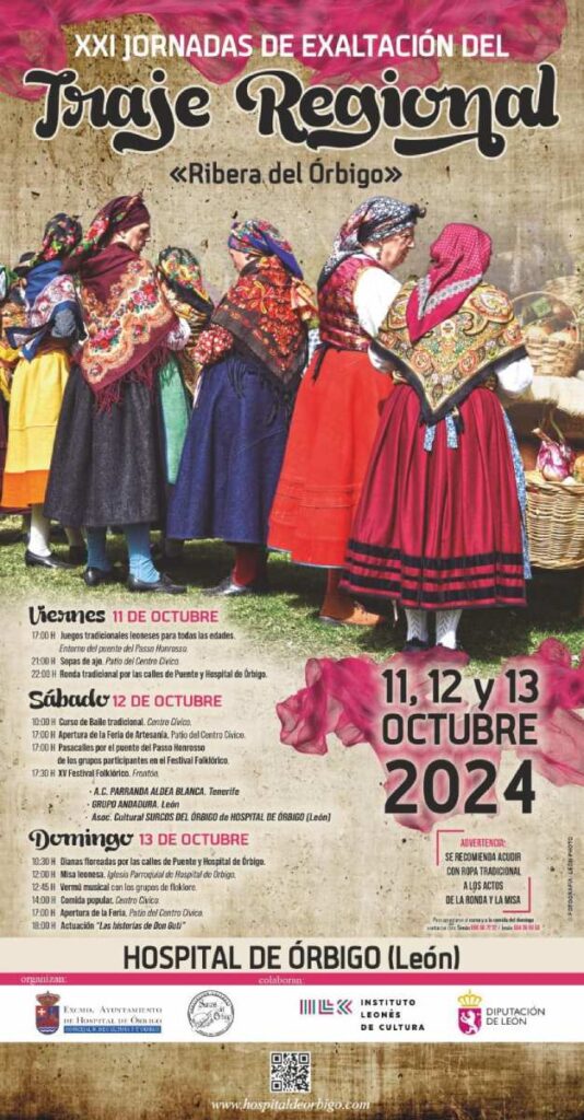 La Asociación Cultural Surcos del Órbigo junto al Ayuntamiento de Hospital de Órbigo ha organizado para el 11, 12 y 13 de octubre una serie de actividades con motivo de las XXI Jornadas de Exaltación del traje tradicional «Ribera del Órbigo».