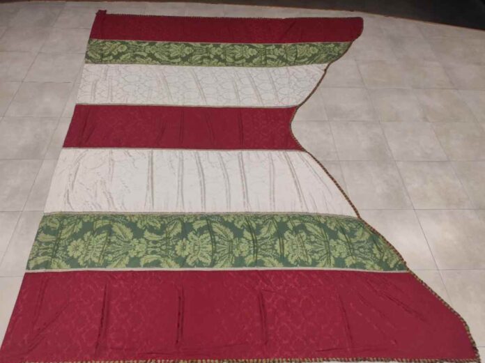 Tras 15 años desde su recuperación, a finales del pasado año las franjas encarnadas presentaban un estado deteriorado, con rasgaduras y numerosos remiendos. Ante esta situación, fueron sustituidas por nuevas telas para garantizar su conservación.