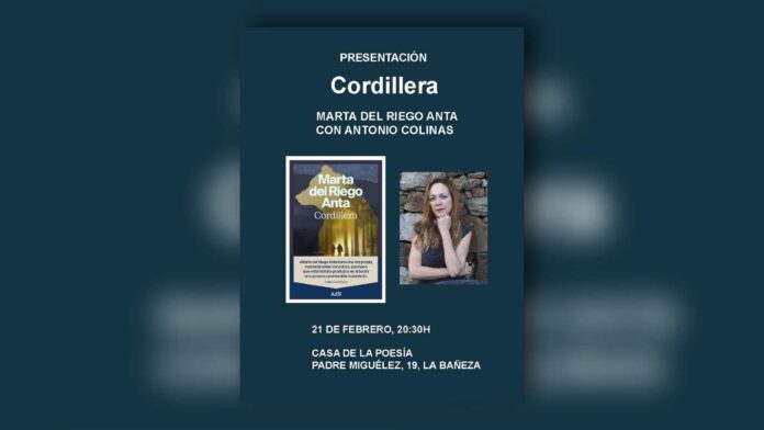 El próximo 21 de febrero a las 20:30 horas, la Casa de la Poesía de La Bañeza abrirá sus puertas para acoger la presentación de «Cordillera», la más reciente novela de la escritora y periodista Marta del Riego Anta. El evento contará con la presencia del reconocido autor Antonio Colinas, quien acompañará a la autora en esta cita literaria que rinde homenaje a la cultura y la escritura.