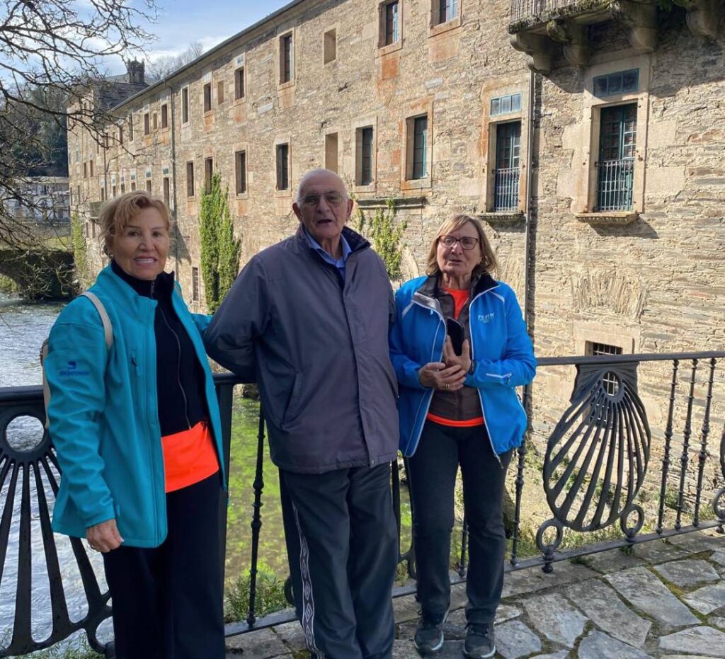 Con fuerzas renovadas, emprendieron la segunda parte de la travesía, alternando subidas y bajadas por un sendero bien definido y señalizado. Durante el trayecto, los caminantes disfrutaron del paisaje caracterizado por praderas, robles y castaños. Finalmente, alcanzaron el alto del monte Oribio, desde donde se divisaba a lo lejos el imponente monasterio de Samos, con el río Sarria fluyendo a través de la localidad.