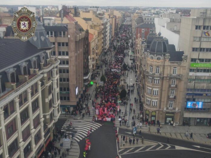 Los manifestantes han partido desde la plaza de San Marcos, a las 12.00 horas, para avanzar hasta la plaza de la Inmaculada, lugar donde se sitúa la Subdelegación del Gobierno, y continuar por Guzmán el Bueno para encarar Ordoño II y la calle Ancha, hasta finalizar en la plaza de la Catedral.