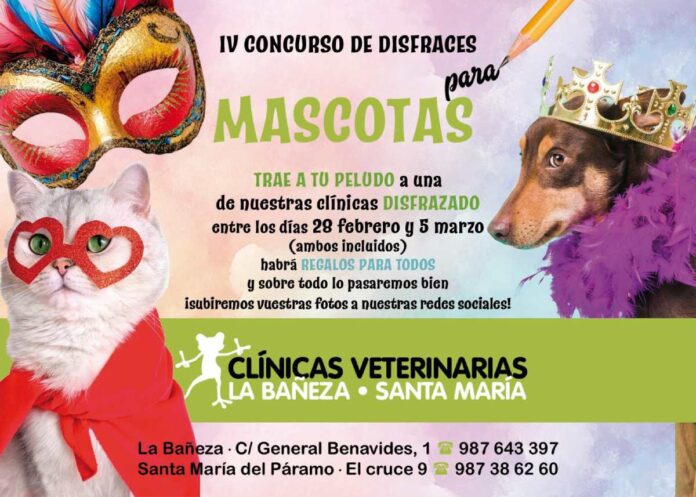 Con la llegada del Carnaval, La Bañeza se llena de color, alegría y diversión, y este año, una vez más, las mascotas también tendrán su momento para brillar. Clínicas Veterinarias de La Bañeza y Santa María del Páramo organizan la cuarta edición de su Concurso de Disfraces para Mascotas, un evento que se ha convertido en una tradición esperada por los amantes de los animales.
