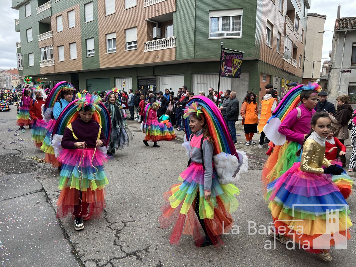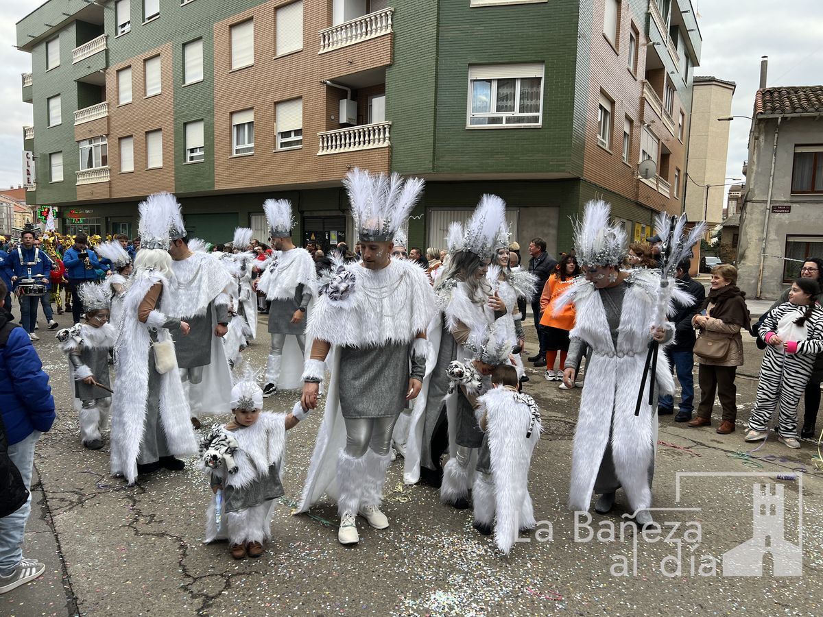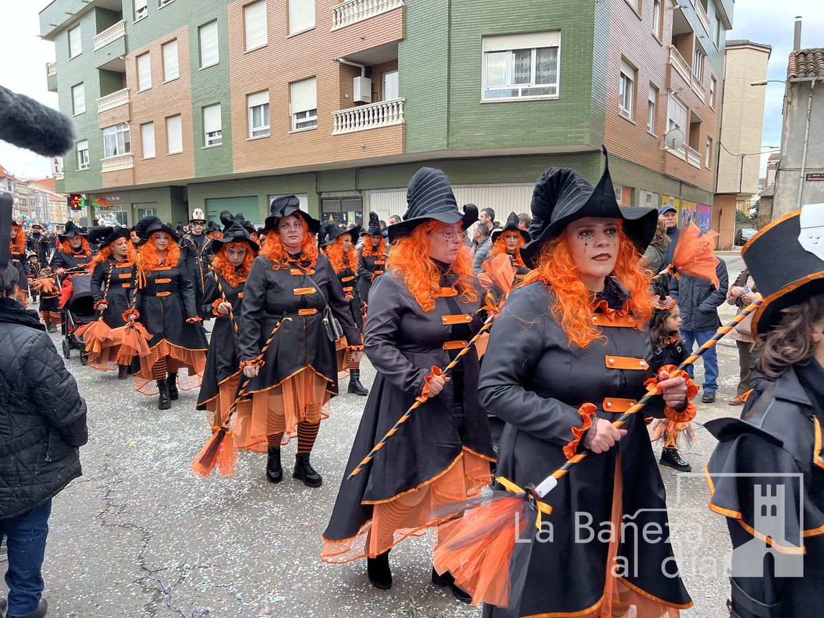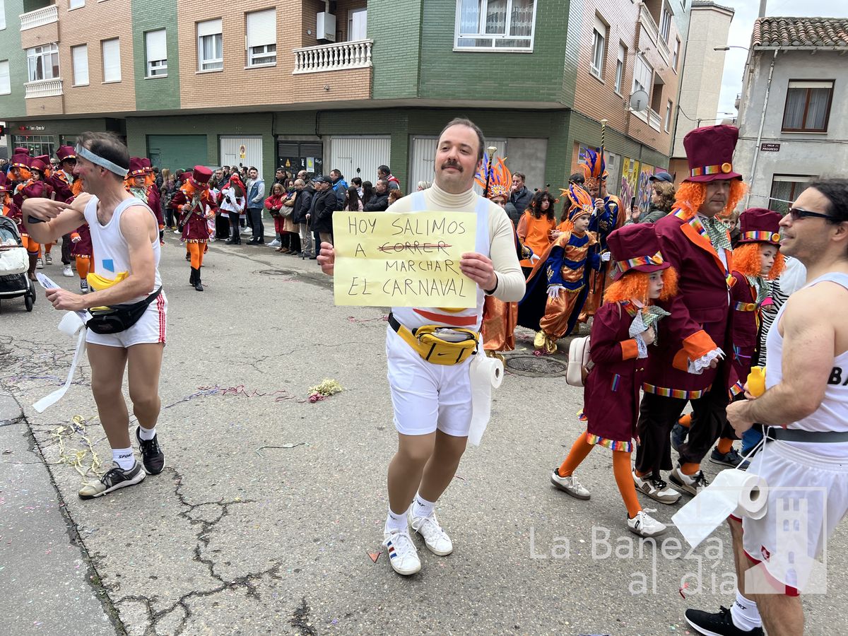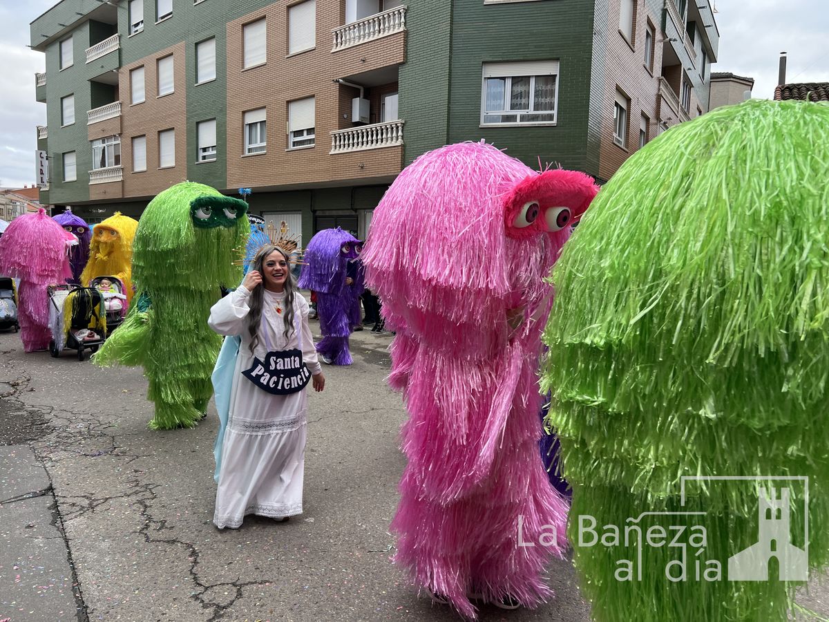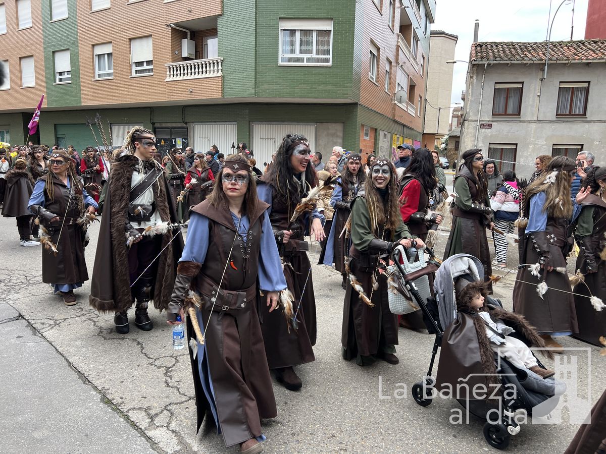 La lluvia permitió que el Gran Desfile de Carnaval de este martes 4 de marzo saliera por las calles de La Bañeza para mostrar los disfraces, el colorido y la imaginación que un año más los bañezanos han puesto para esta fiesta.