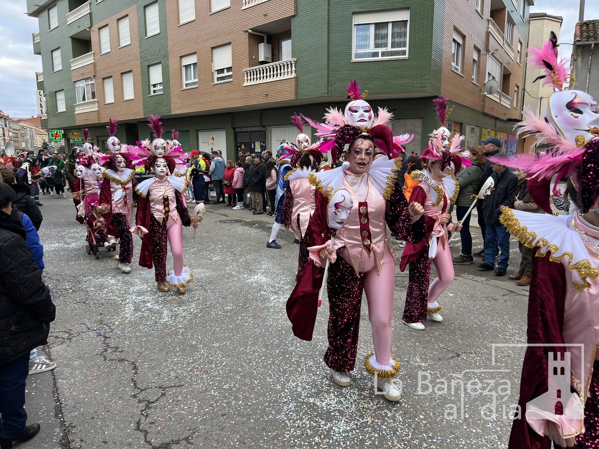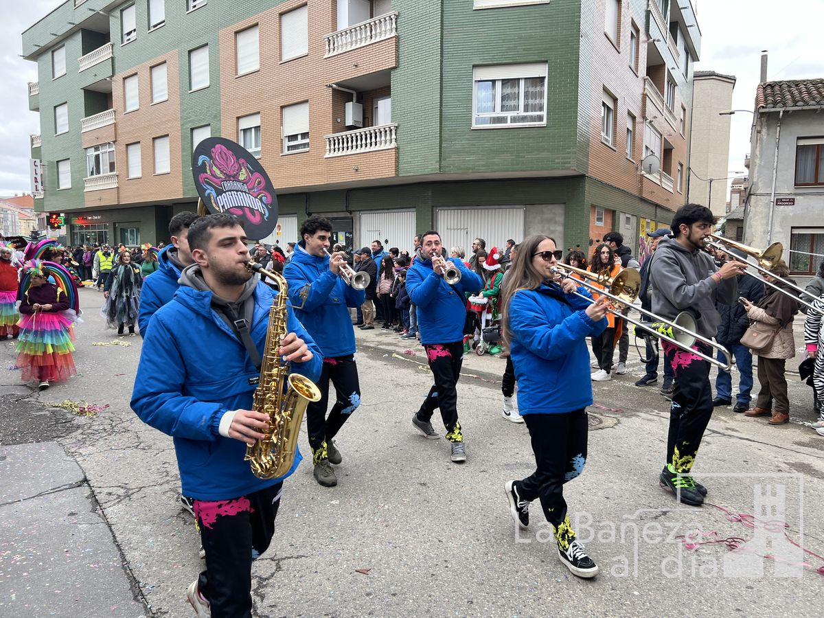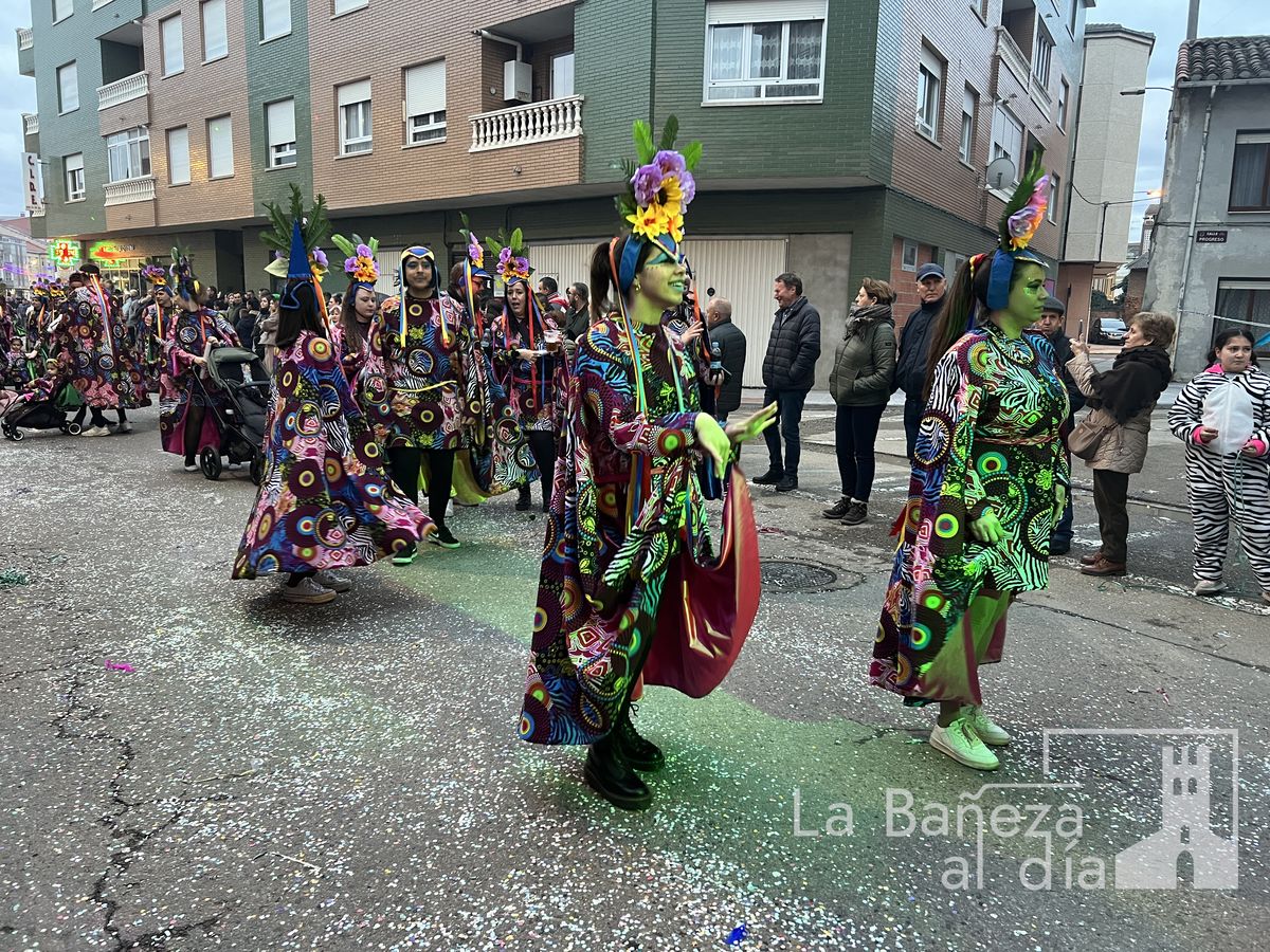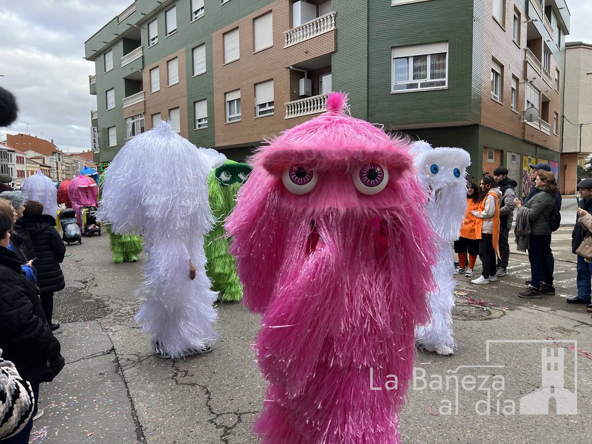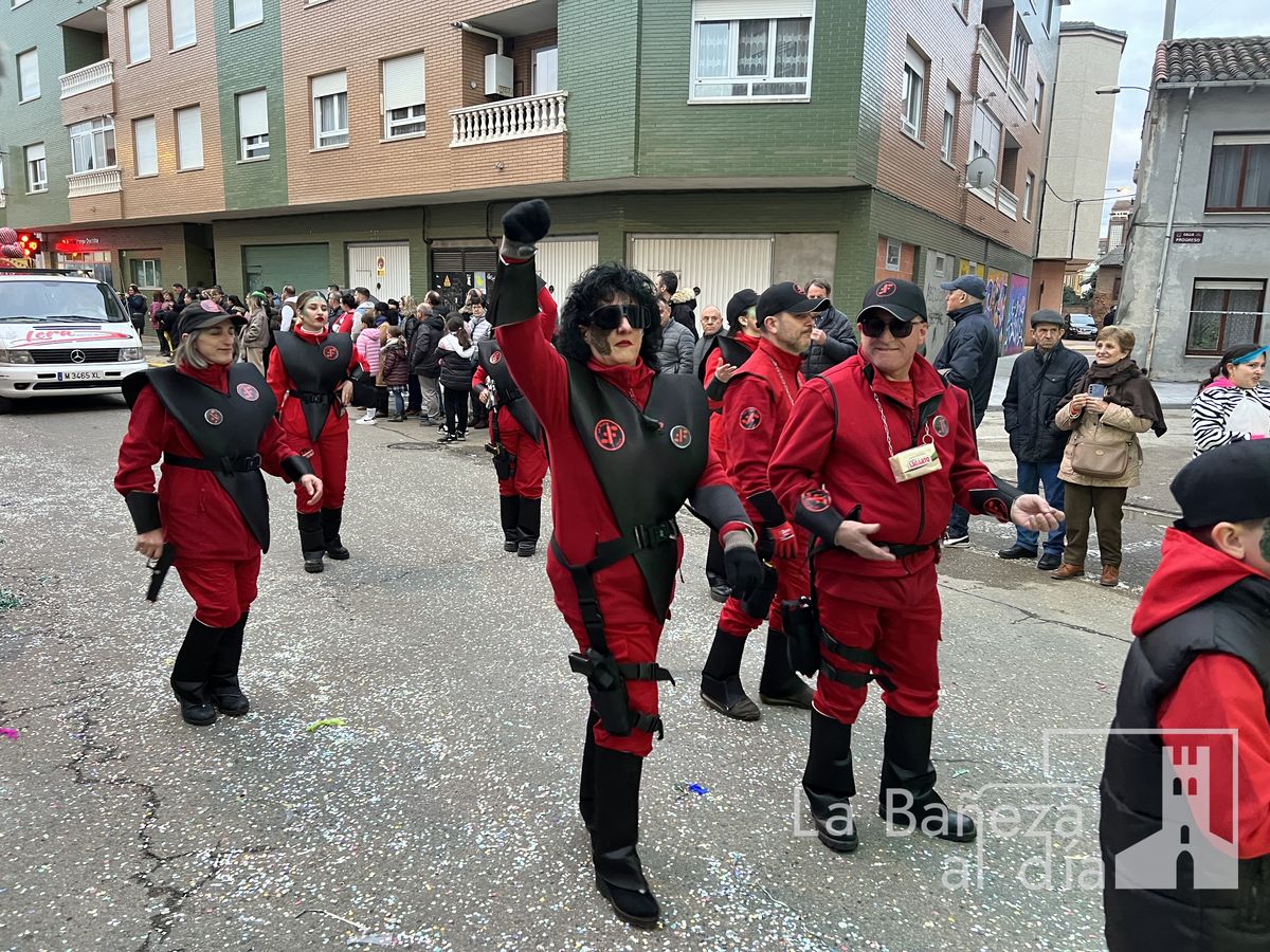 La lluvia permitió que el Gran Desfile de Carnaval de este martes 4 de marzo saliera por las calles de La Bañeza para mostrar los disfraces, el colorido y la imaginación que un año más los bañezanos han puesto para esta fiesta.