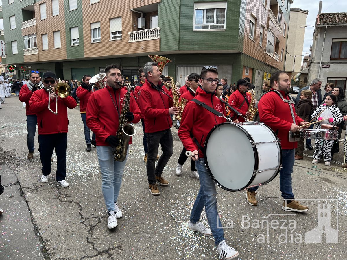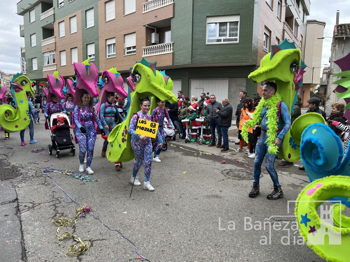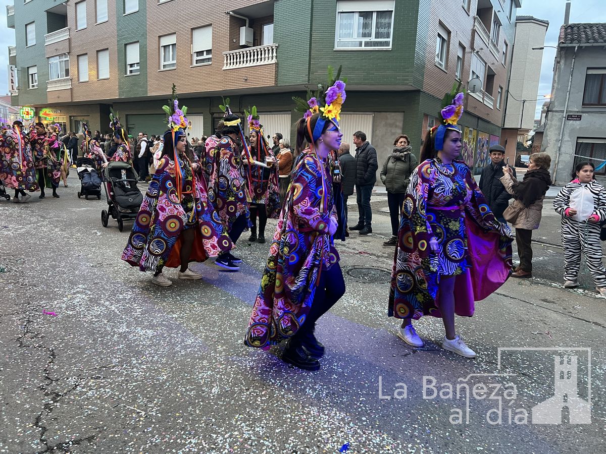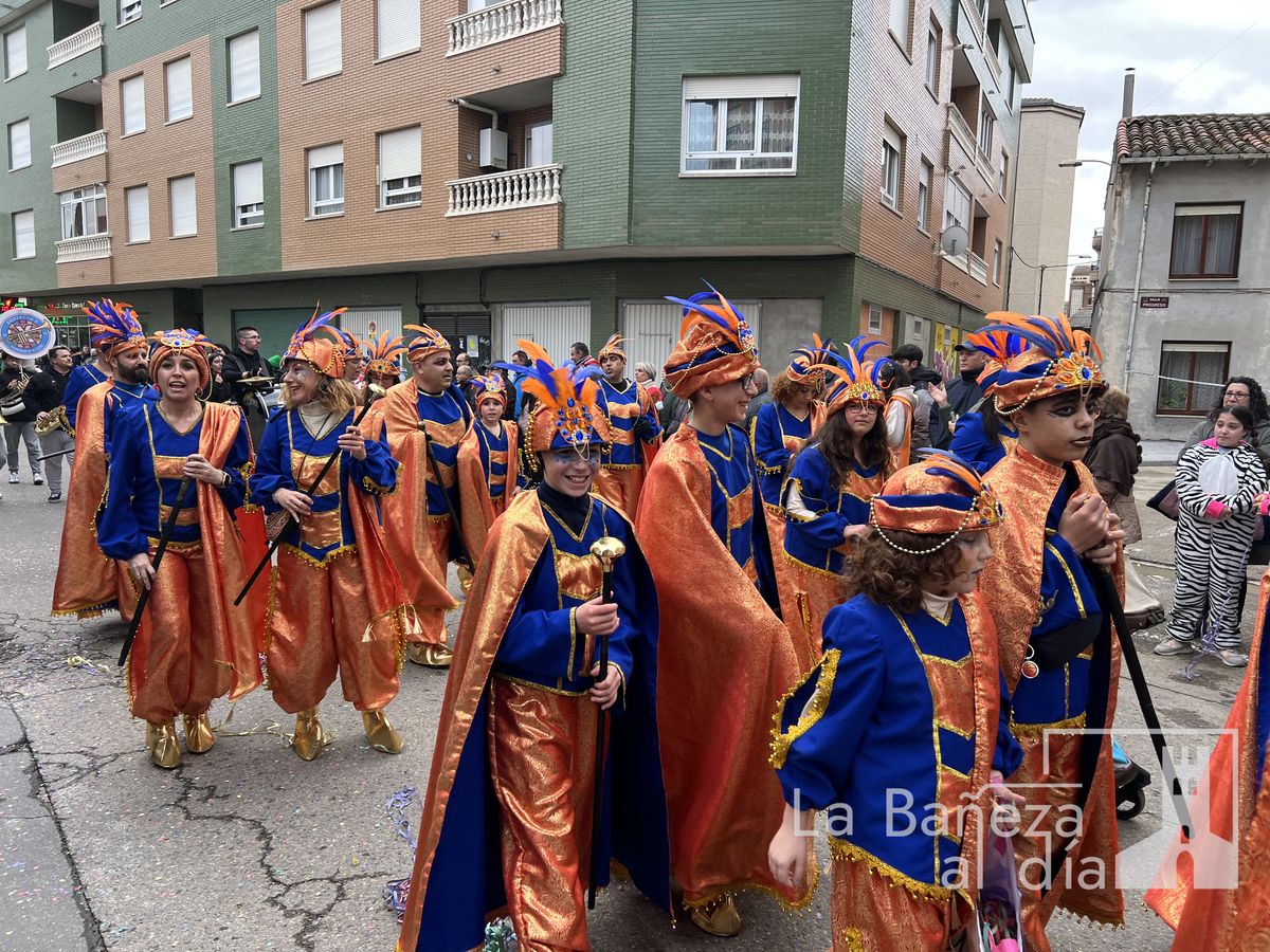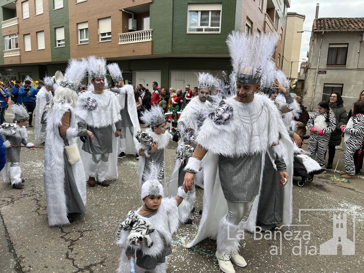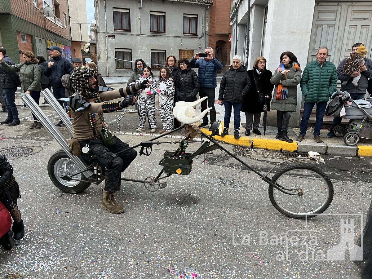 La lluvia permitió que el Gran Desfile de Carnaval de este martes 4 de marzo saliera por las calles de La Bañeza para mostrar los disfraces, el colorido y la imaginación que un año más los bañezanos han puesto para esta fiesta.
