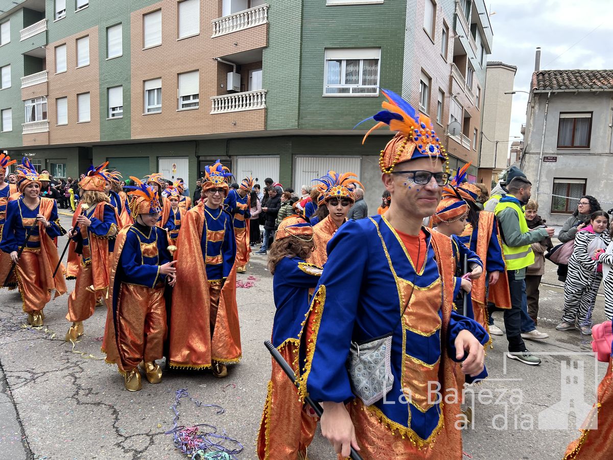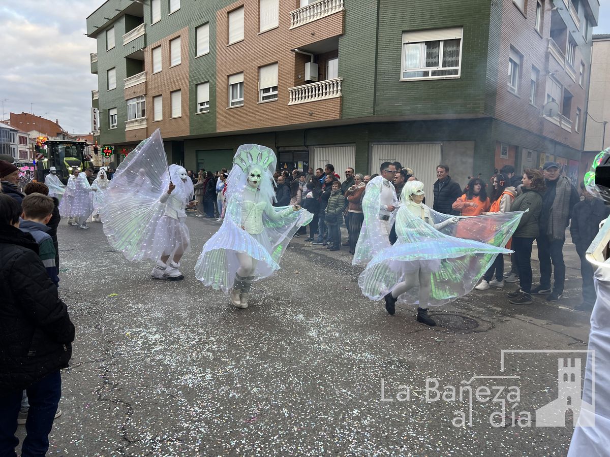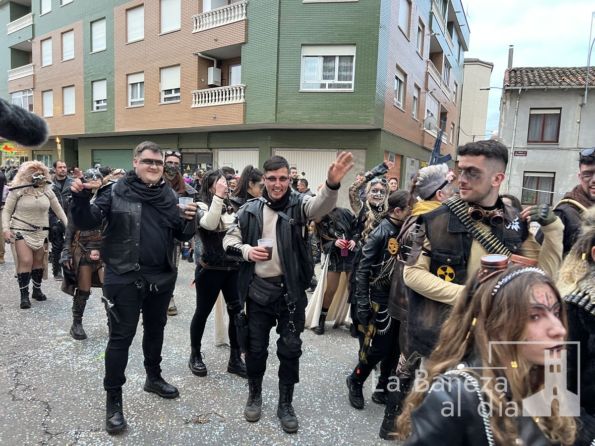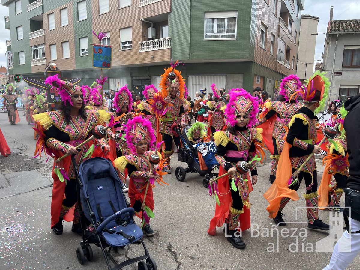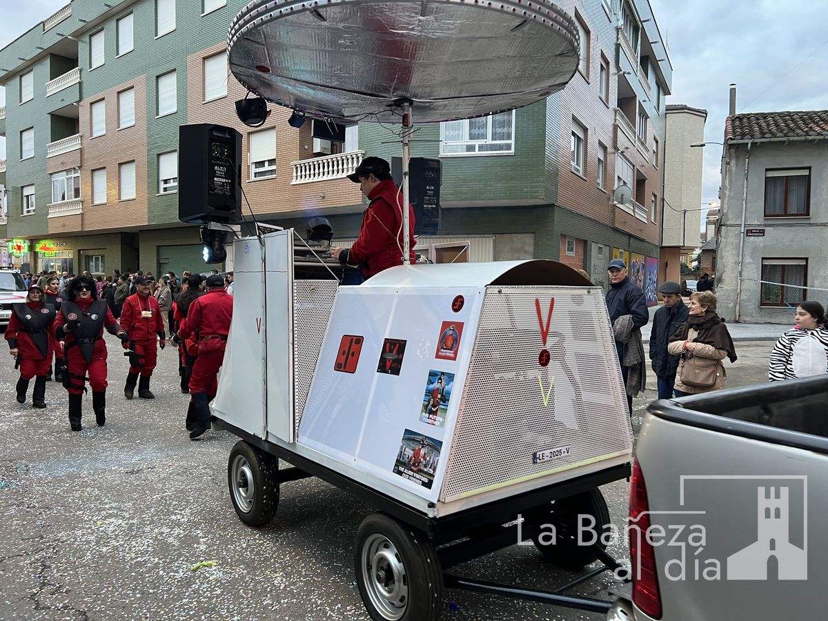La lluvia permitió que el Gran Desfile de Carnaval de este martes 4 de marzo saliera por las calles de La Bañeza para mostrar los disfraces, el colorido y la imaginación que un año más los bañezanos han puesto para esta fiesta.