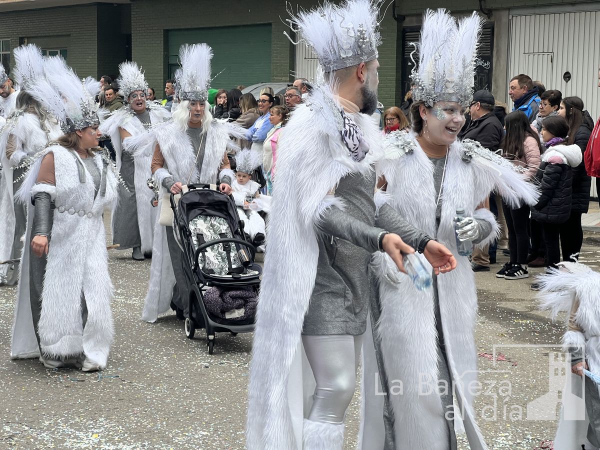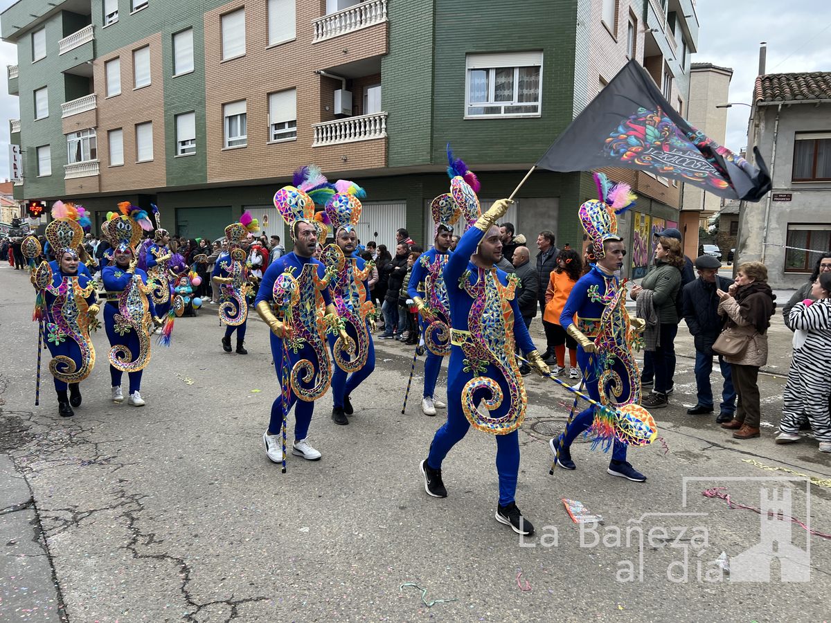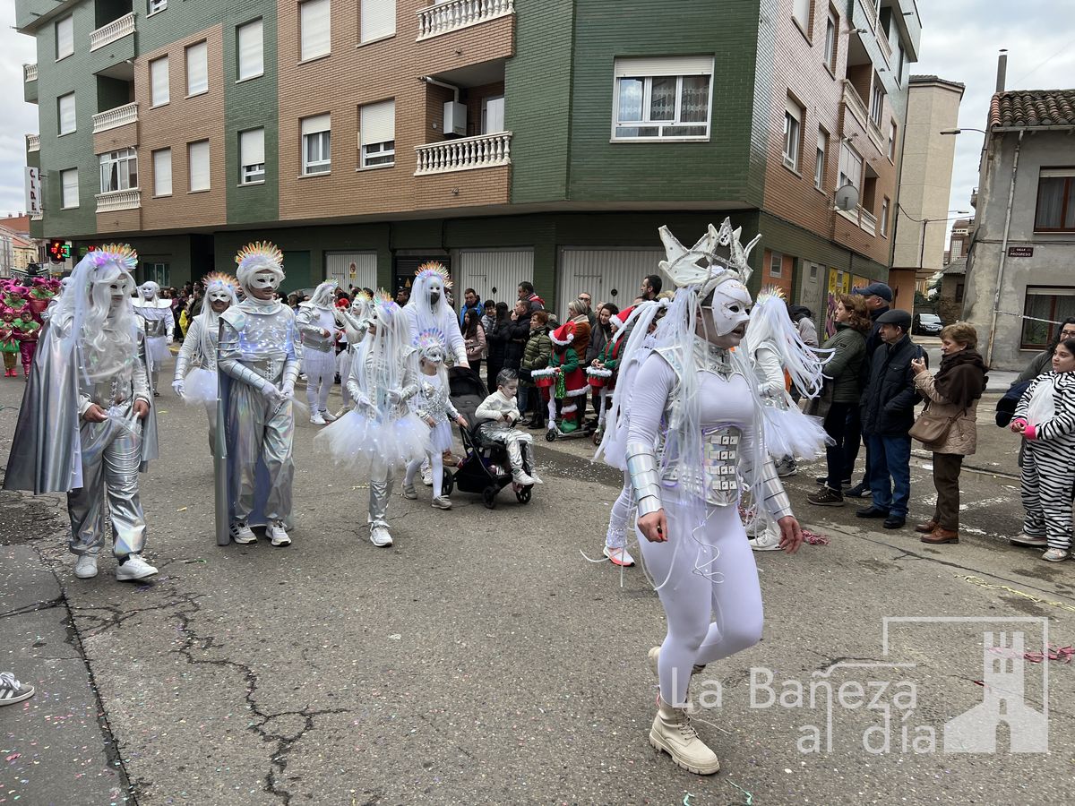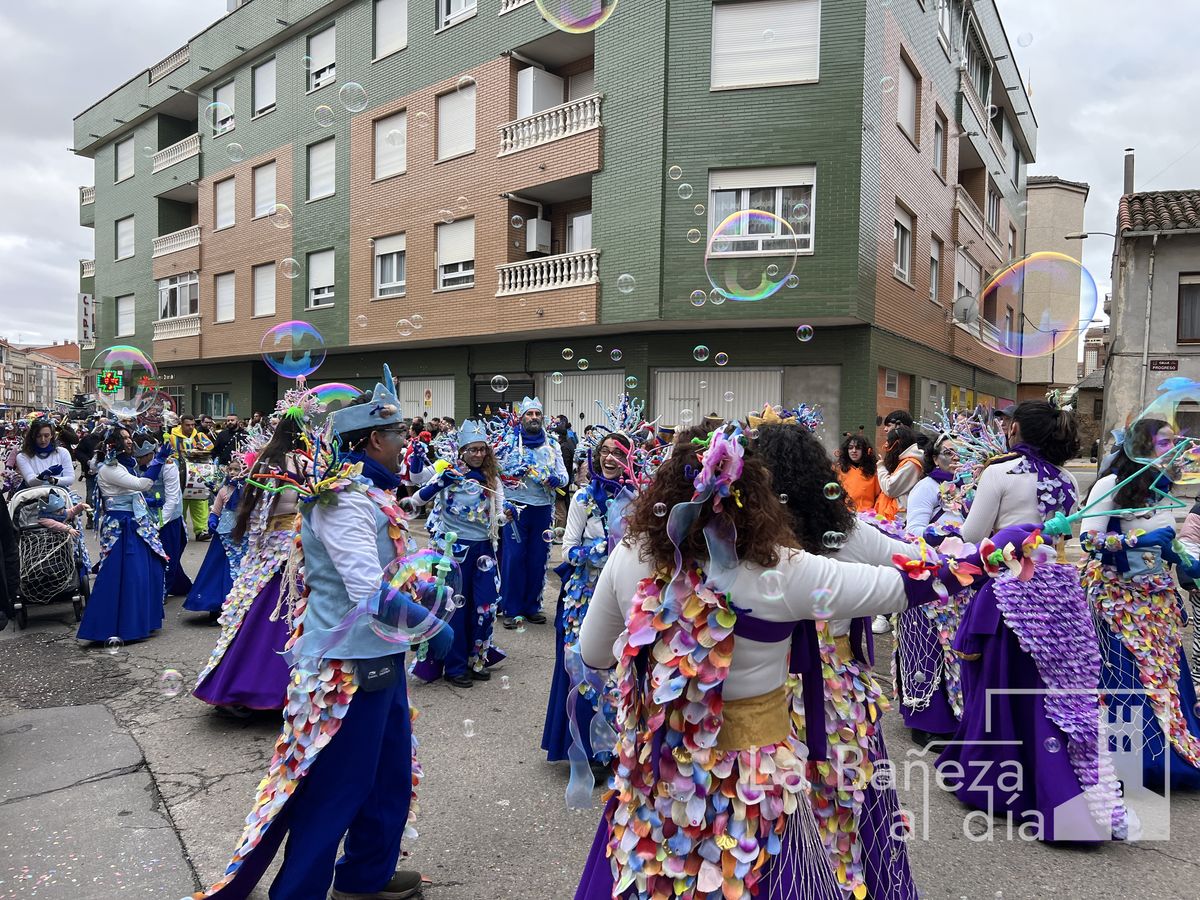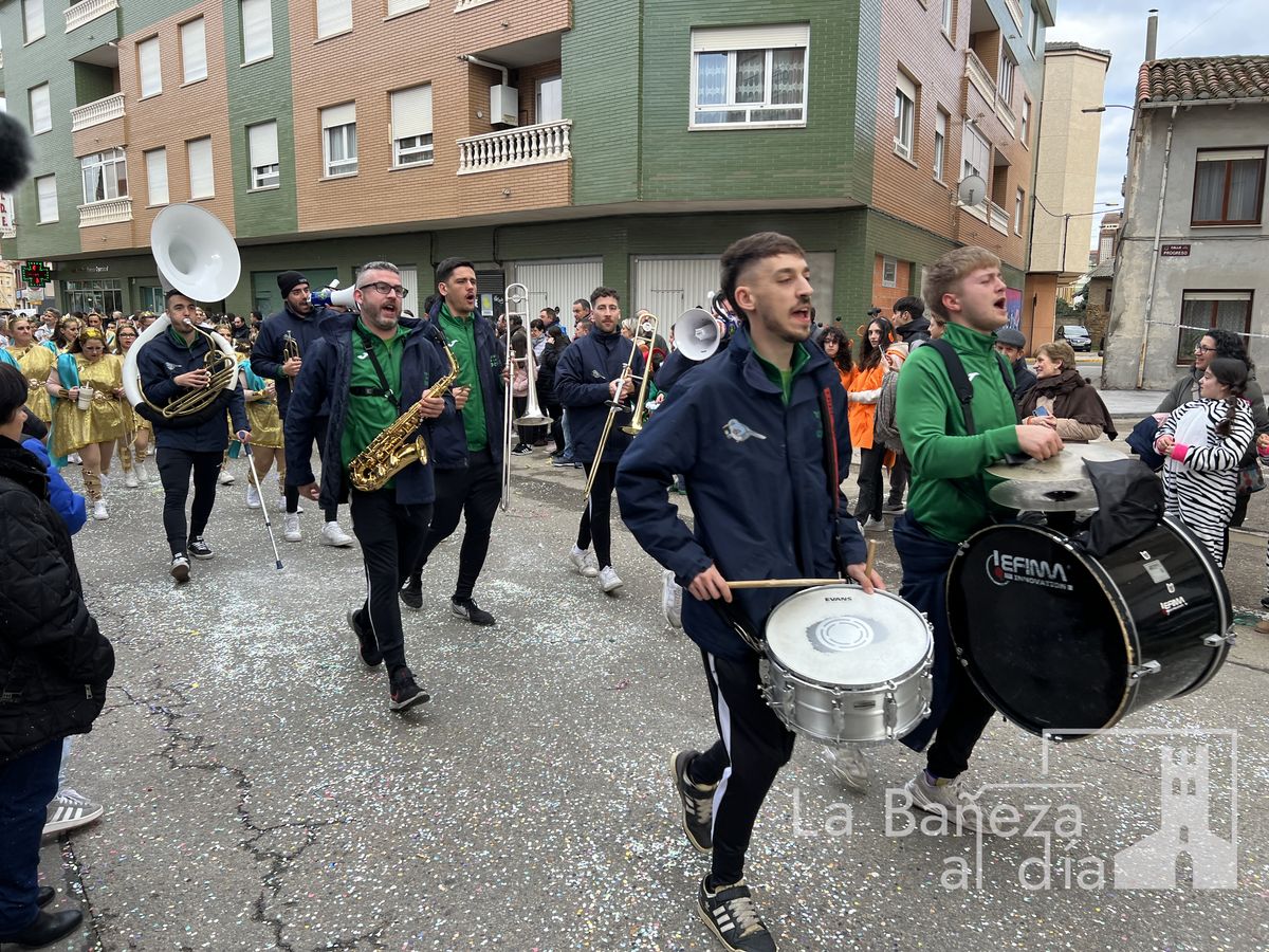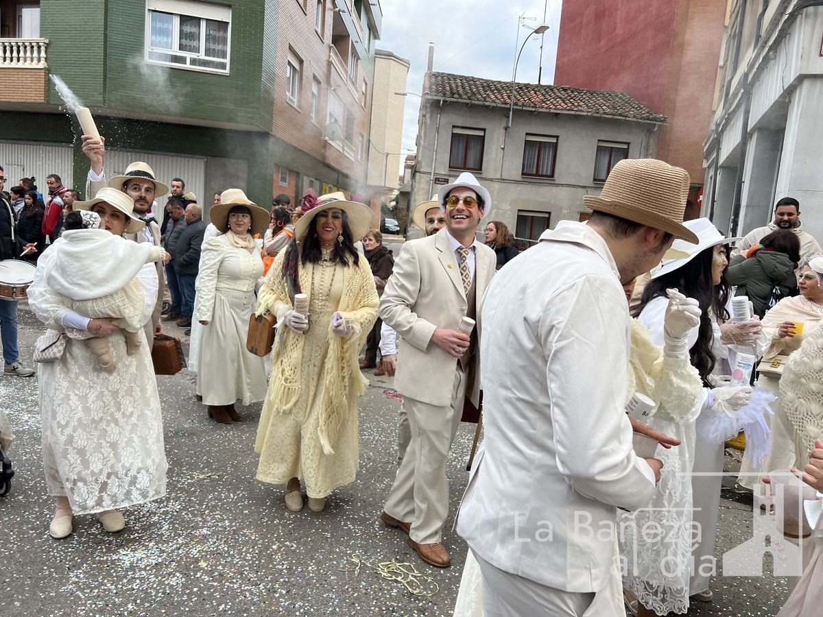 La lluvia permitió que el Gran Desfile de Carnaval de este martes 4 de marzo saliera por las calles de La Bañeza para mostrar los disfraces, el colorido y la imaginación que un año más los bañezanos han puesto para esta fiesta.