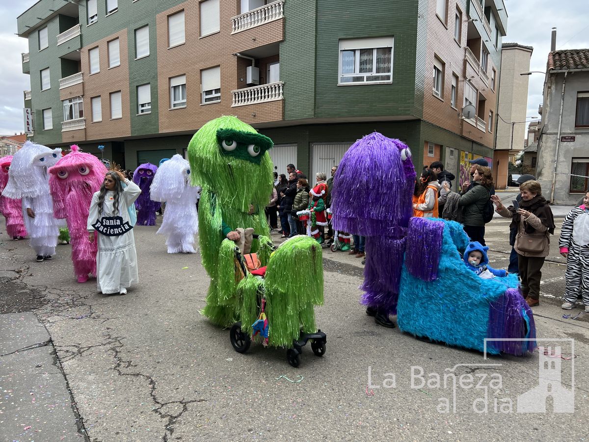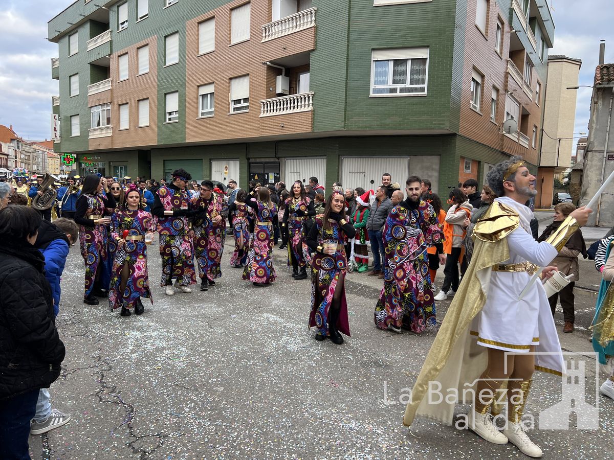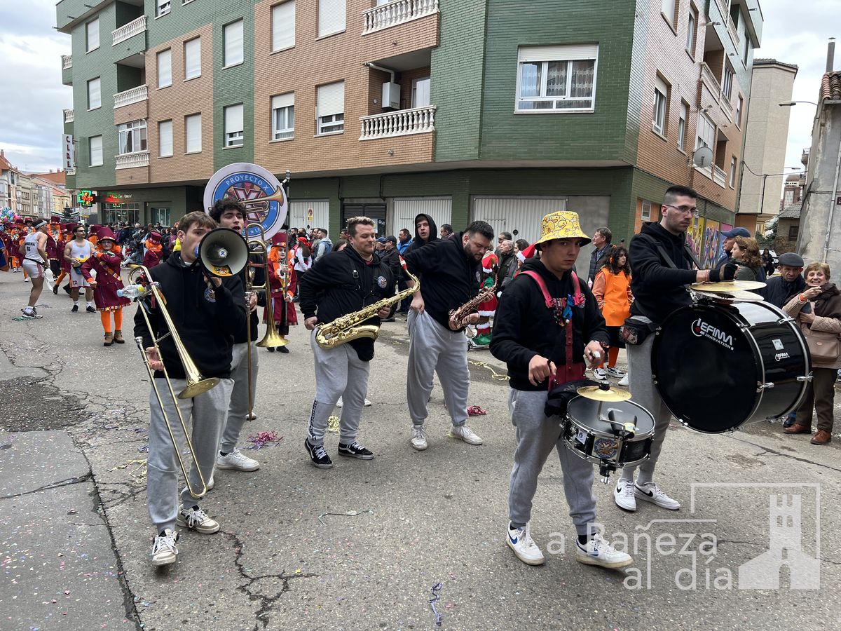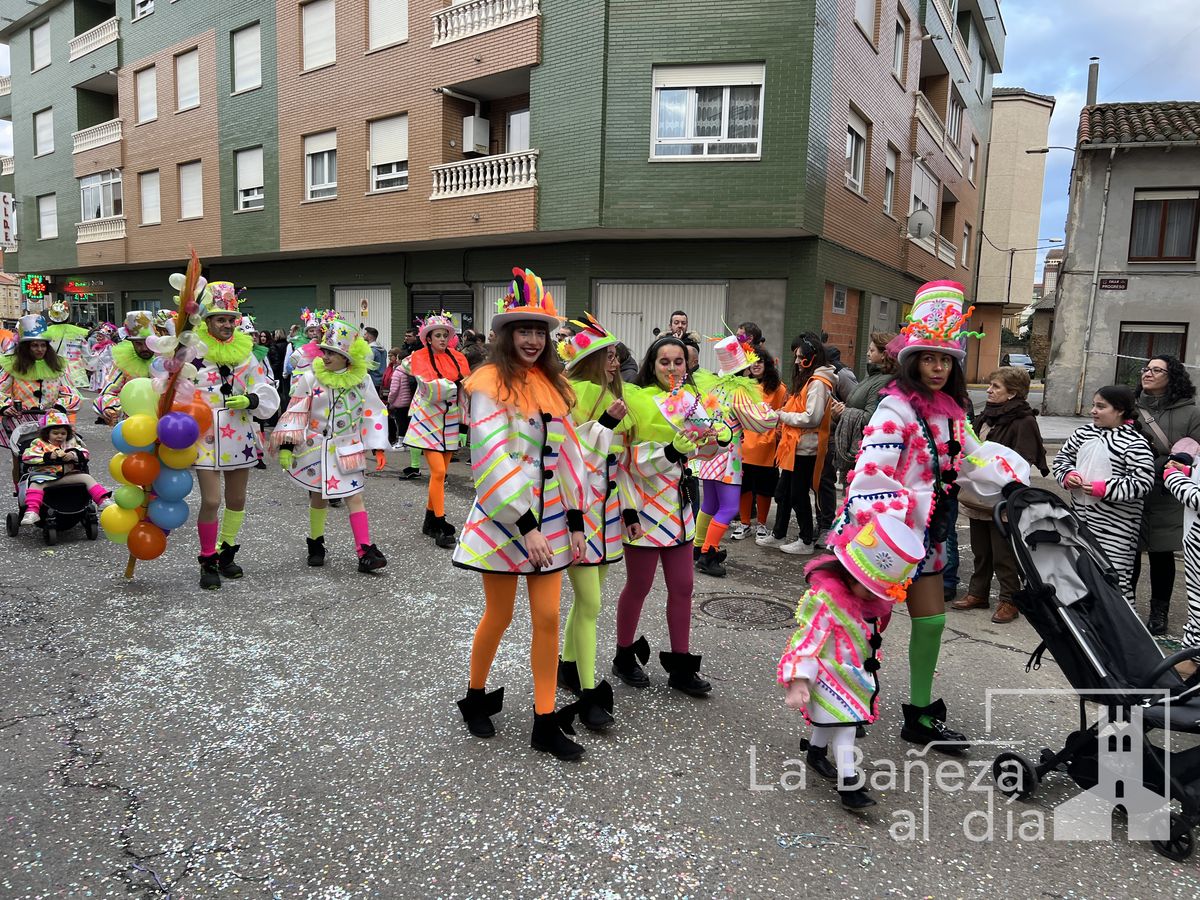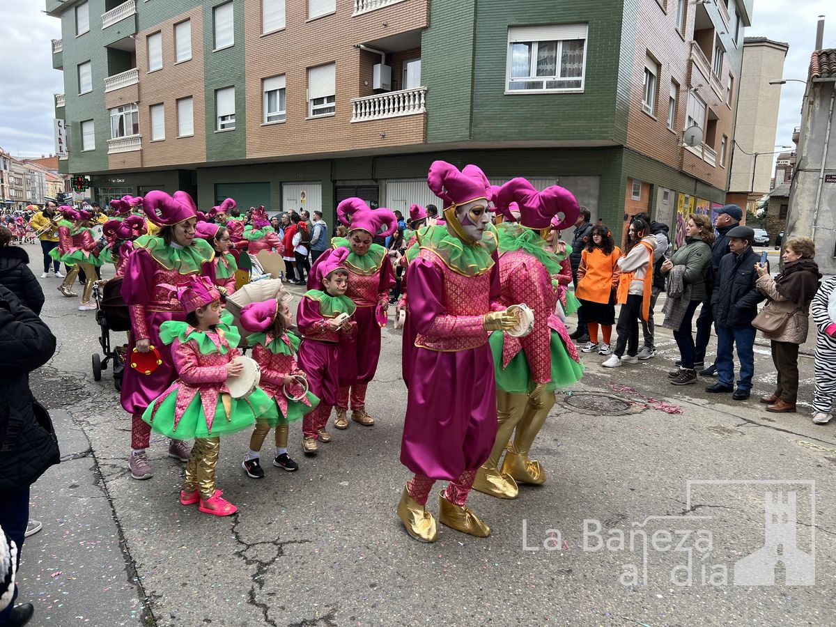 La lluvia permitió que el Gran Desfile de Carnaval de este martes 4 de marzo saliera por las calles de La Bañeza para mostrar los disfraces, el colorido y la imaginación que un año más los bañezanos han puesto para esta fiesta.