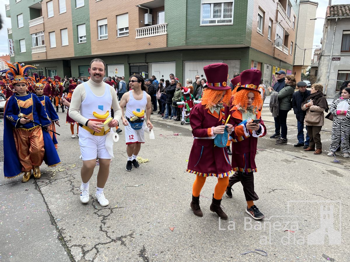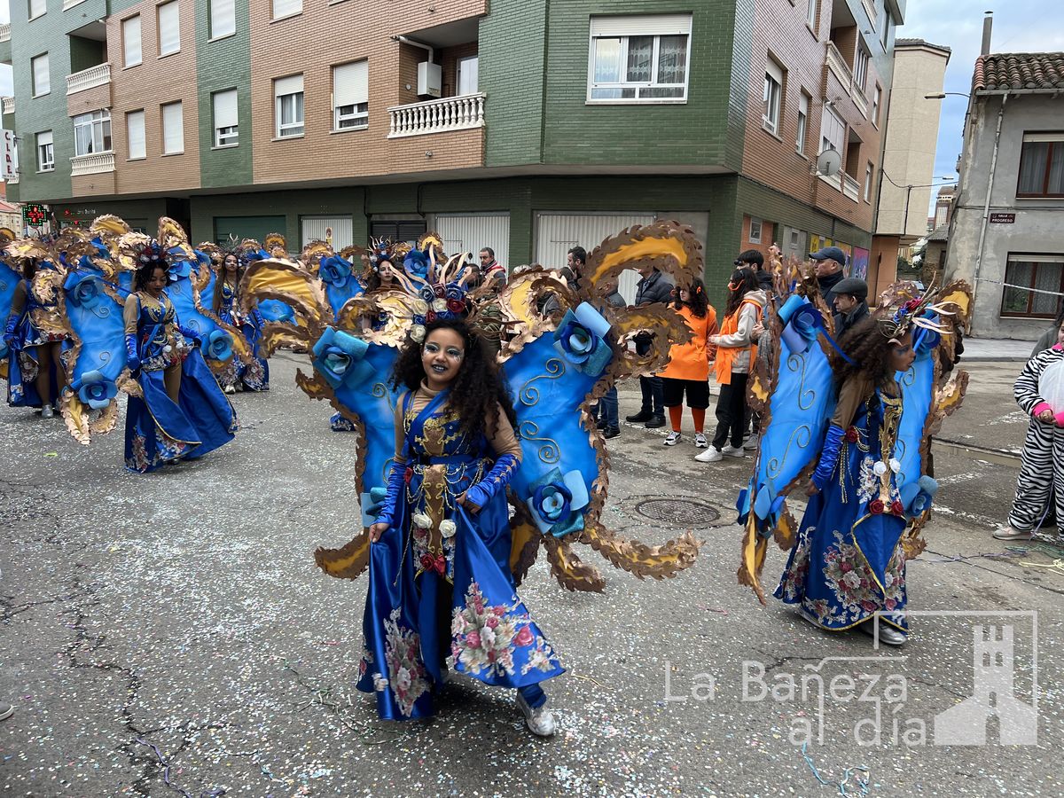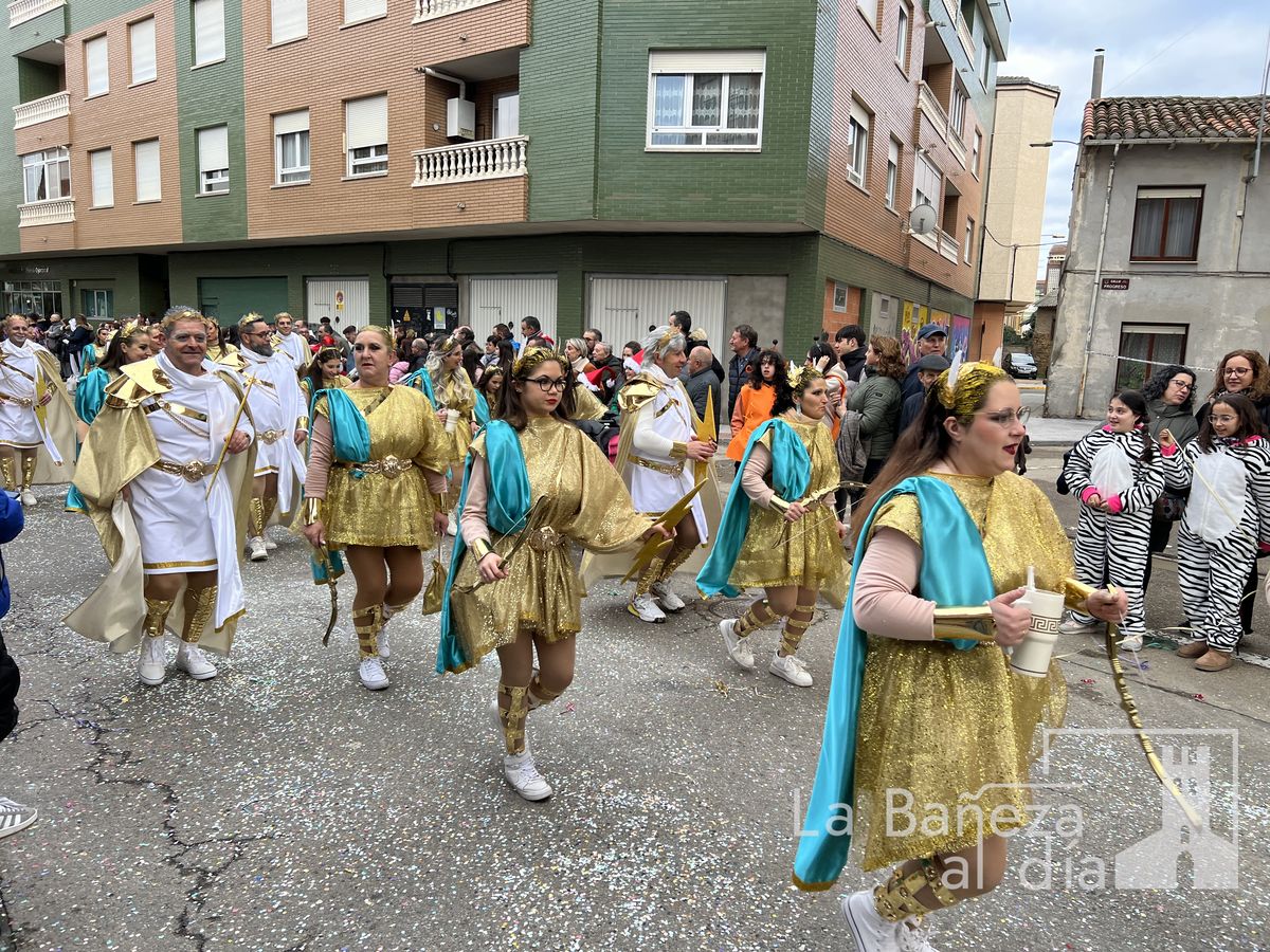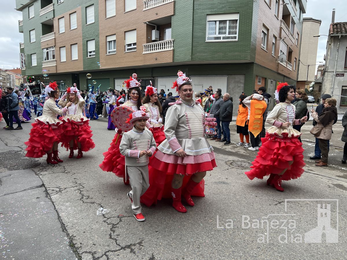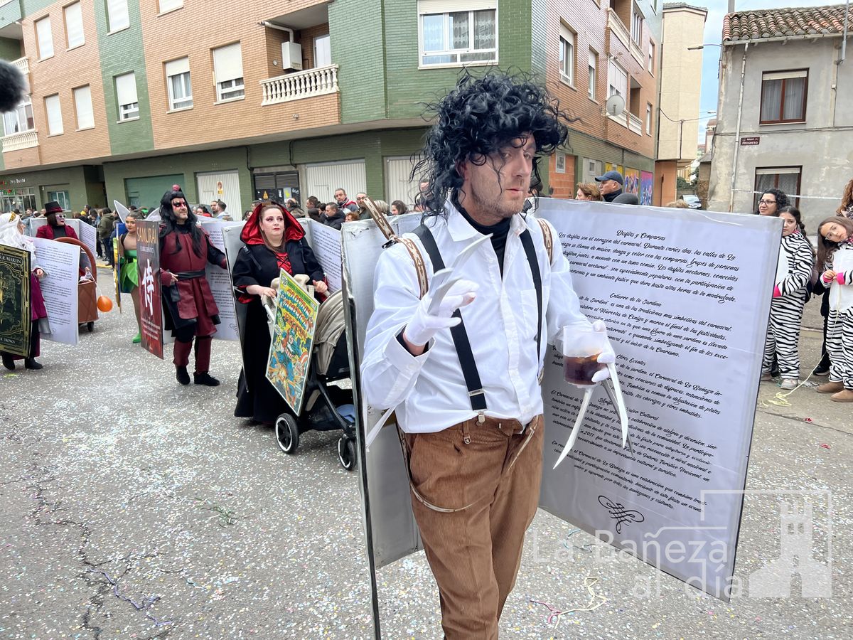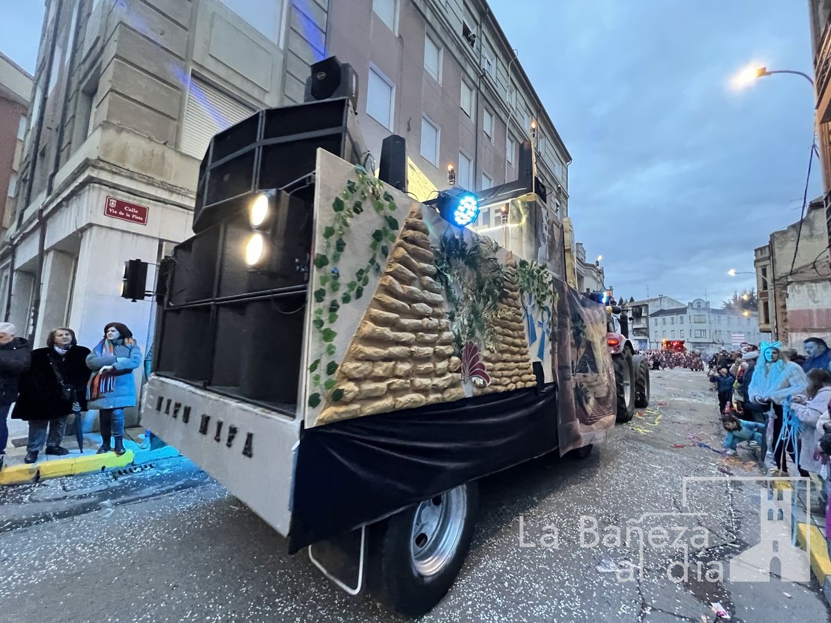 La lluvia permitió que el Gran Desfile de Carnaval de este martes 4 de marzo saliera por las calles de La Bañeza para mostrar los disfraces, el colorido y la imaginación que un año más los bañezanos han puesto para esta fiesta.