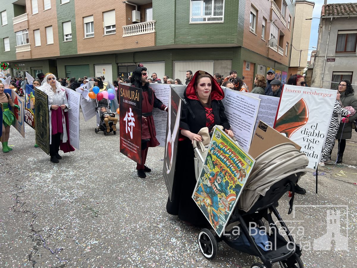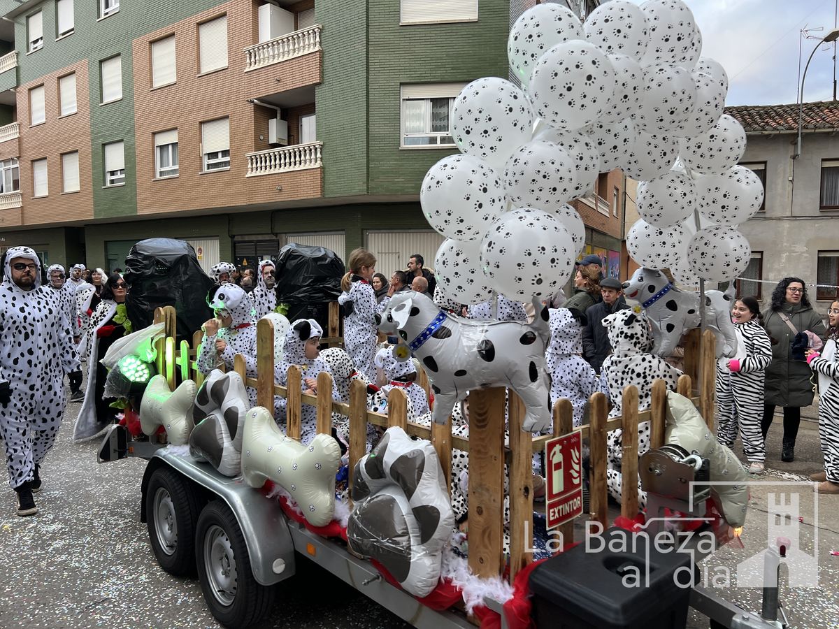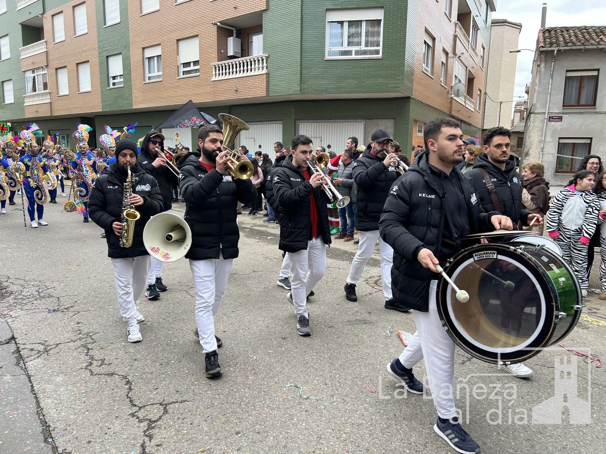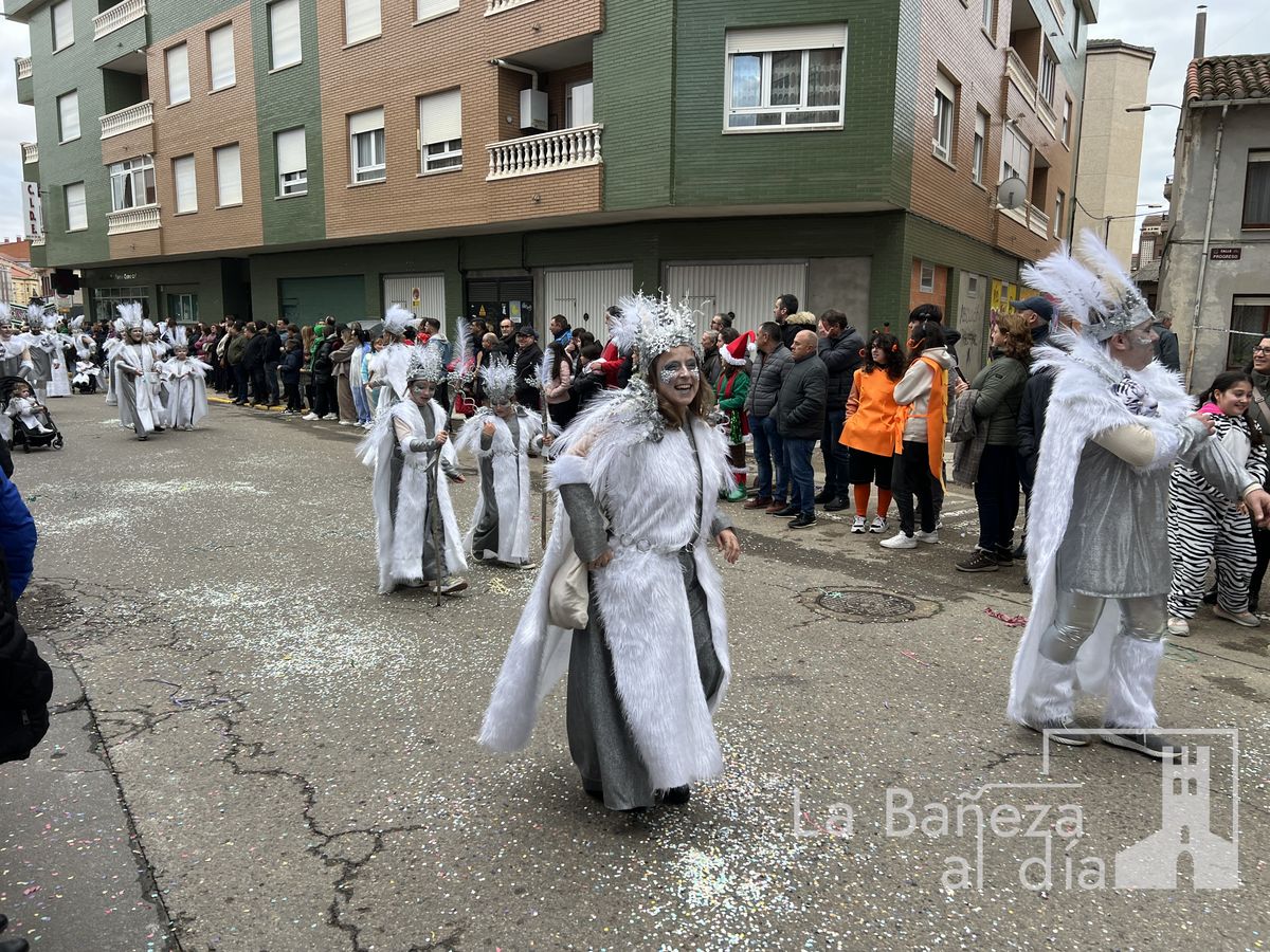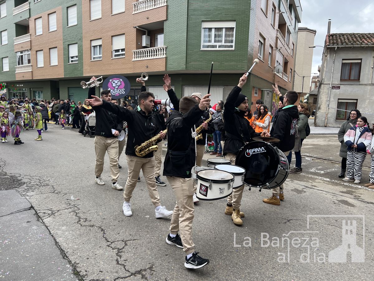 La lluvia permitió que el Gran Desfile de Carnaval de este martes 4 de marzo saliera por las calles de La Bañeza para mostrar los disfraces, el colorido y la imaginación que un año más los bañezanos han puesto para esta fiesta.