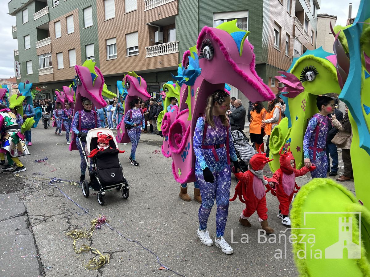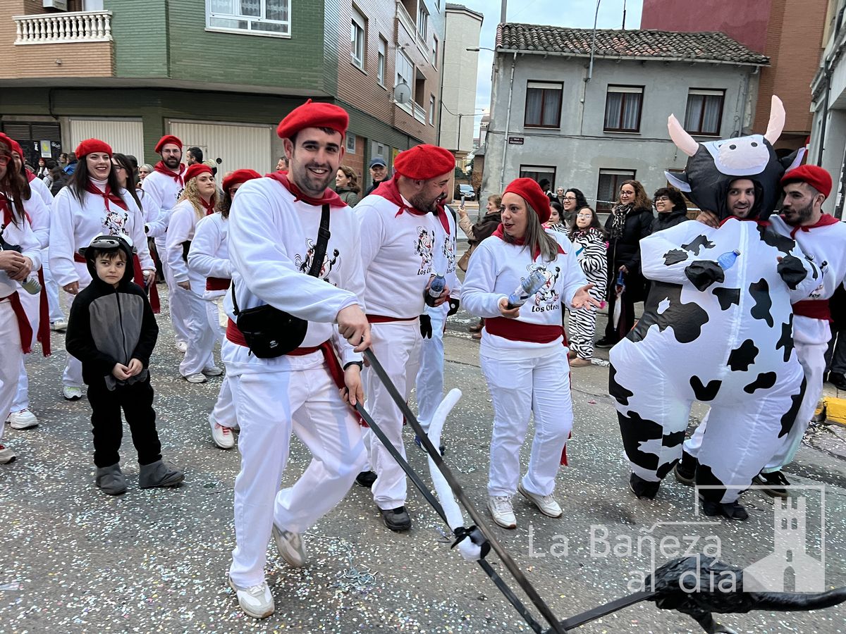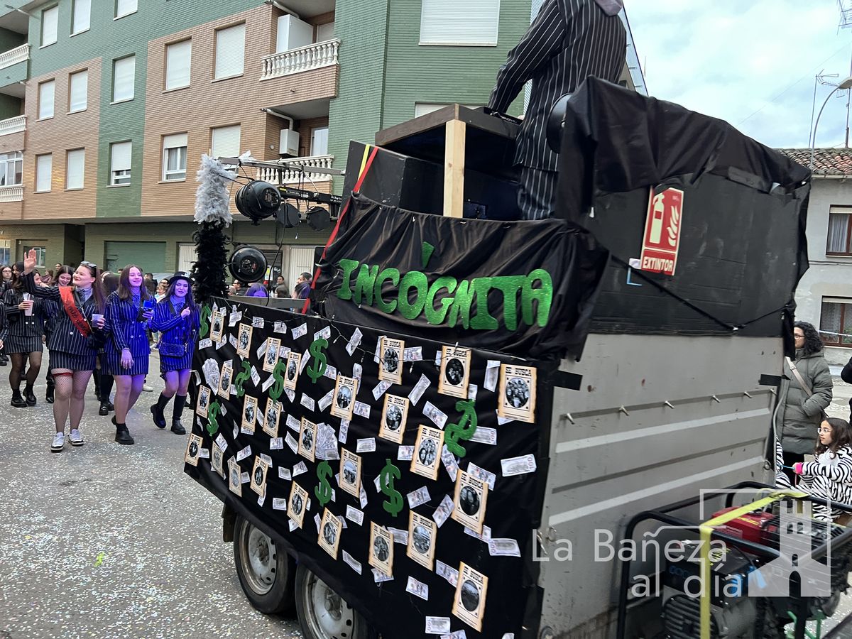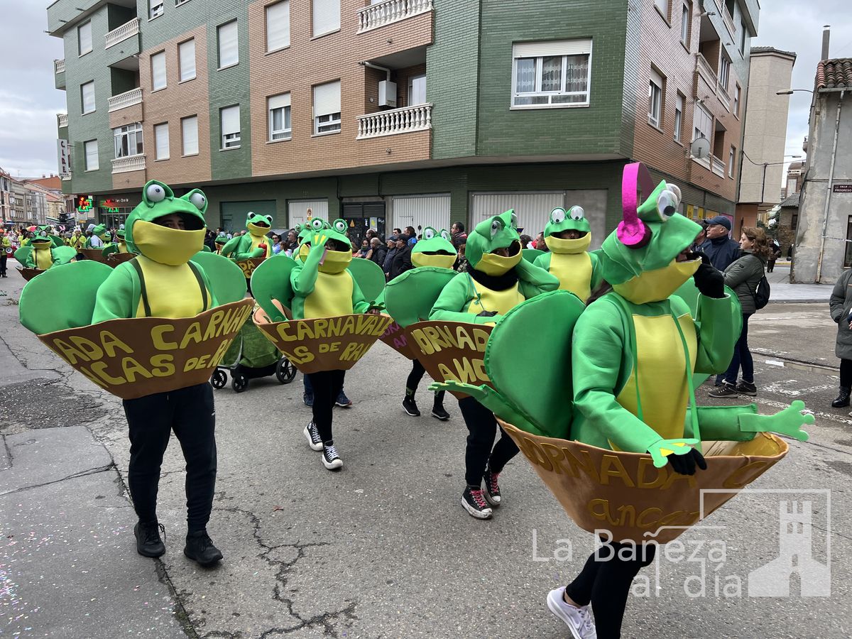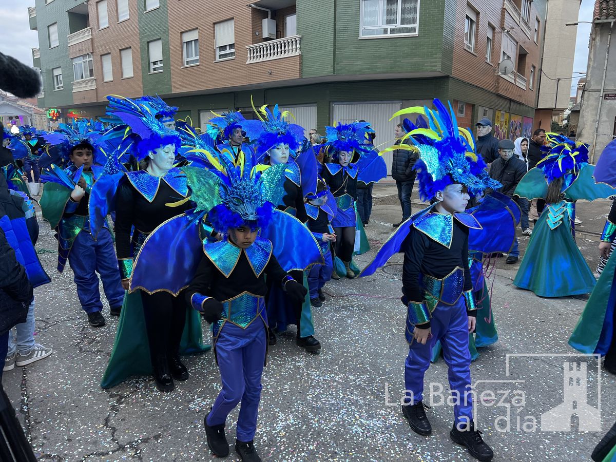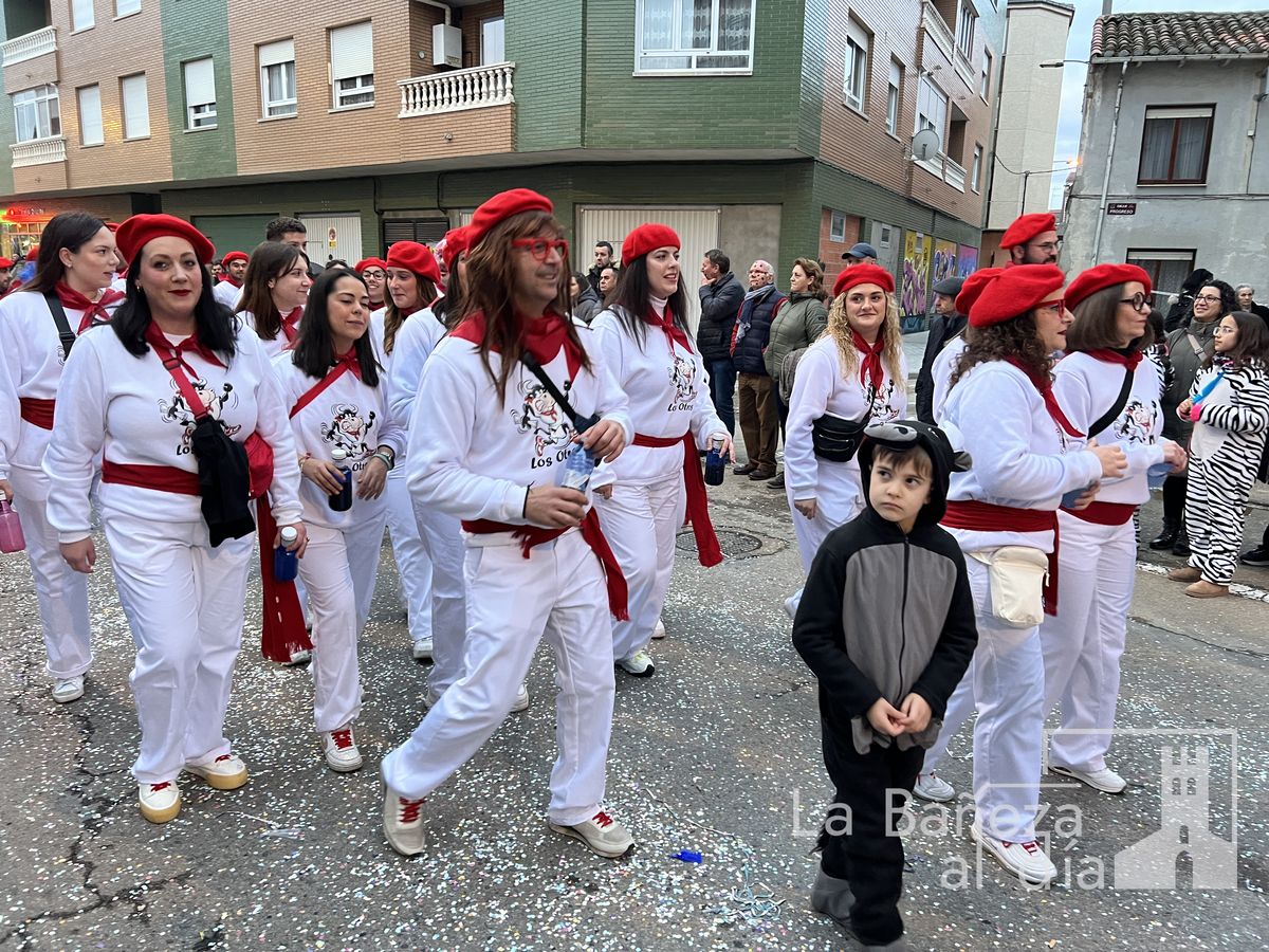 La lluvia permitió que el Gran Desfile de Carnaval de este martes 4 de marzo saliera por las calles de La Bañeza para mostrar los disfraces, el colorido y la imaginación que un año más los bañezanos han puesto para esta fiesta.