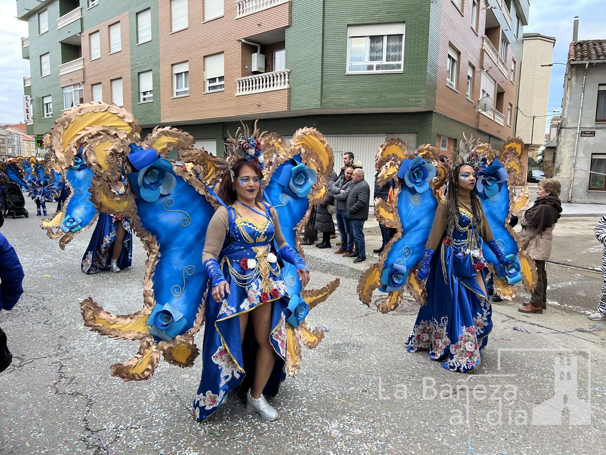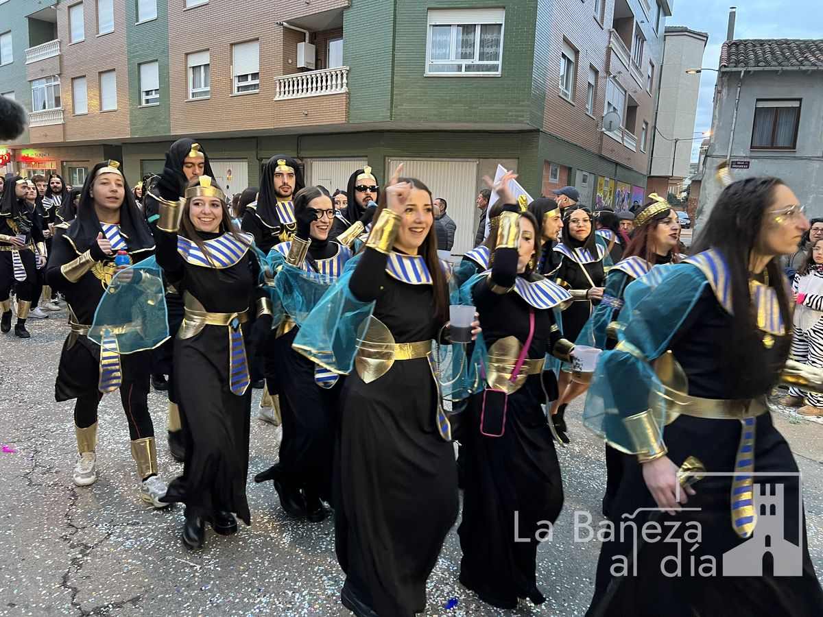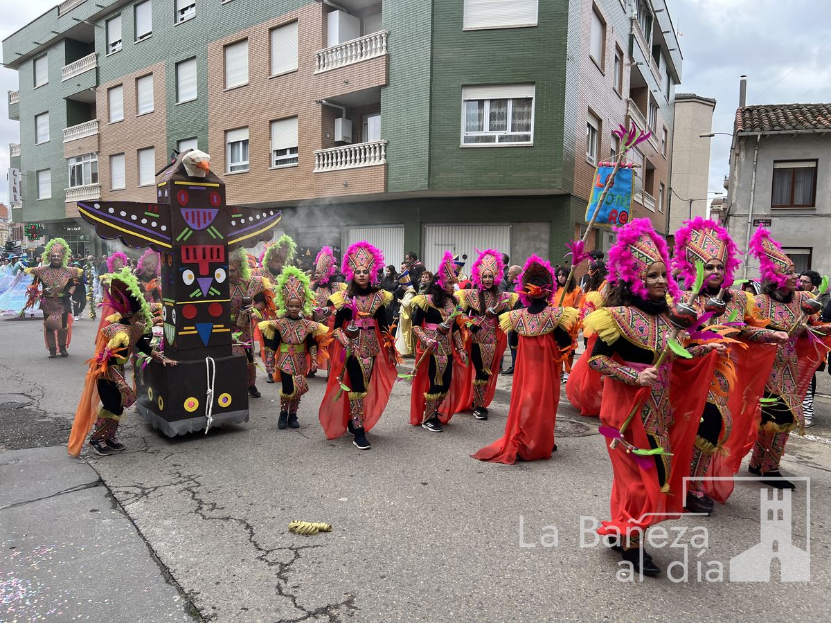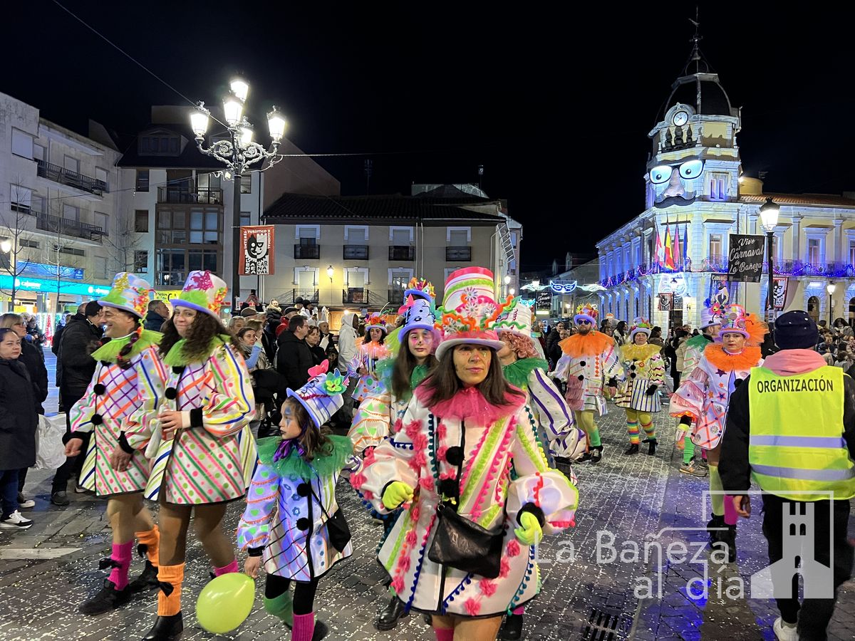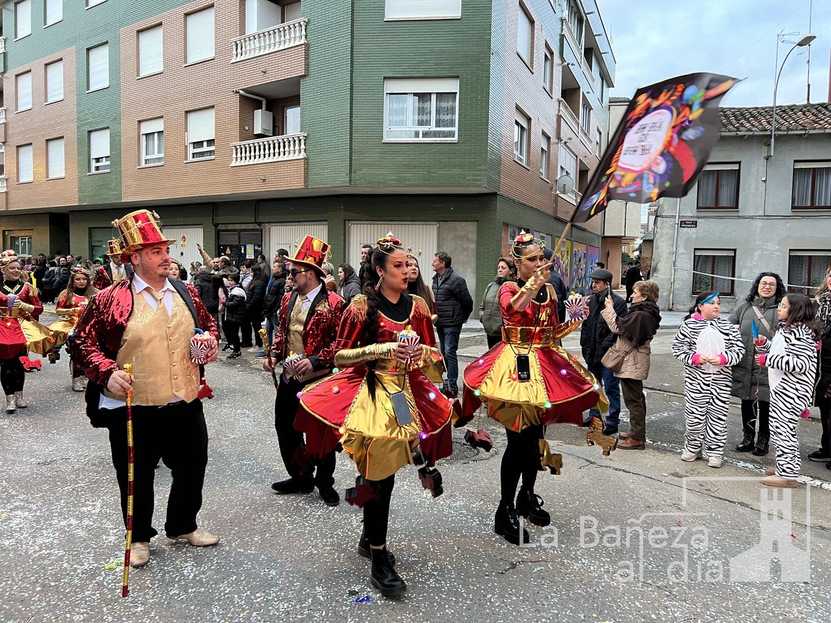 La lluvia permitió que el Gran Desfile de Carnaval de este martes 4 de marzo saliera por las calles de La Bañeza para mostrar los disfraces, el colorido y la imaginación que un año más los bañezanos han puesto para esta fiesta.