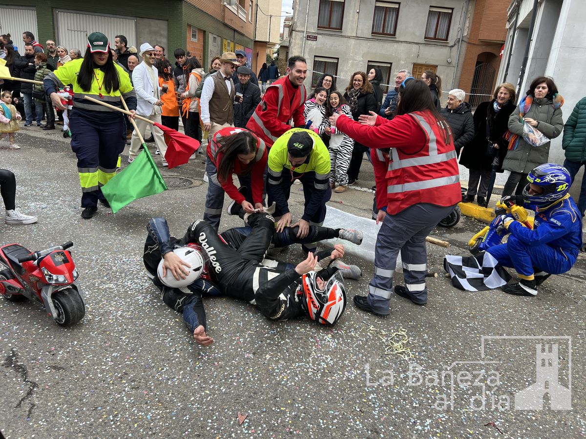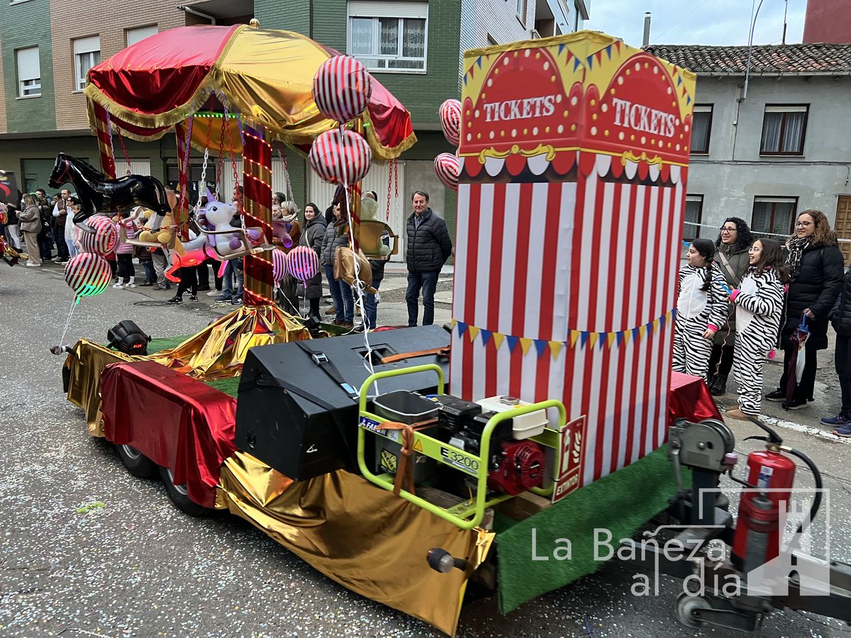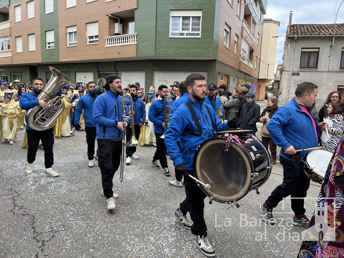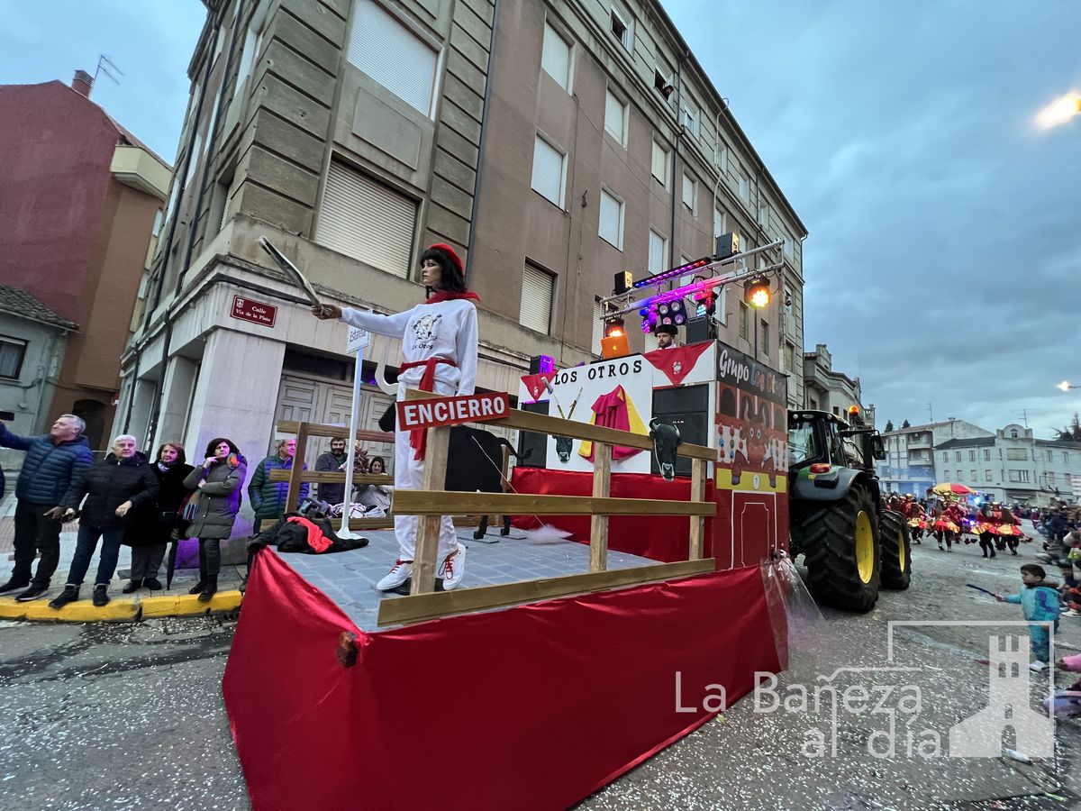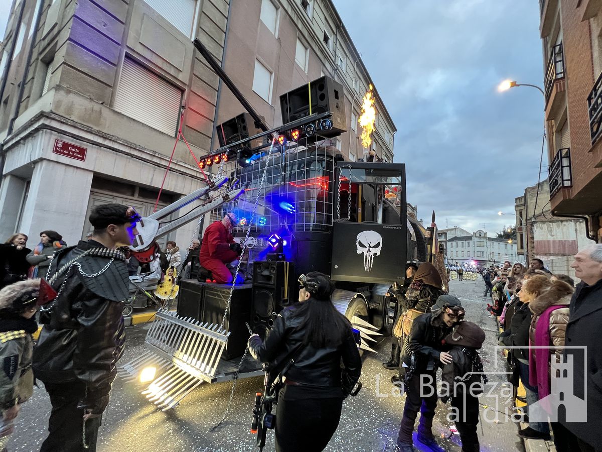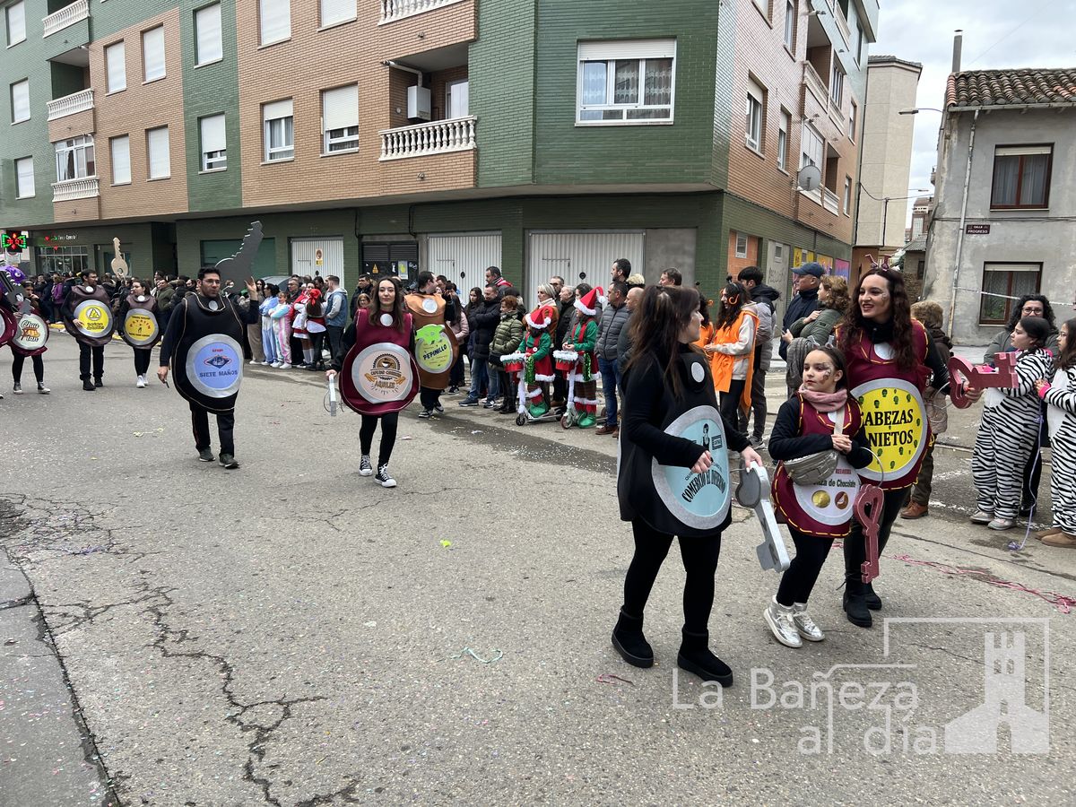 La lluvia permitió que el Gran Desfile de Carnaval de este martes 4 de marzo saliera por las calles de La Bañeza para mostrar los disfraces, el colorido y la imaginación que un año más los bañezanos han puesto para esta fiesta.