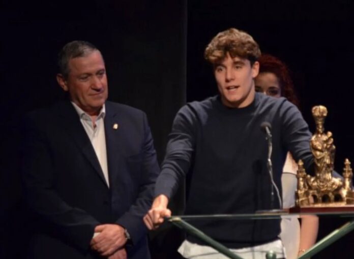 Diego Corcoba Gil, integrante del CD SOS La Bañeza, recibió el premio al mejor deportista absoluto de Benavente en reconocimiento a su trayectoria y éxitos durante el pasado año.