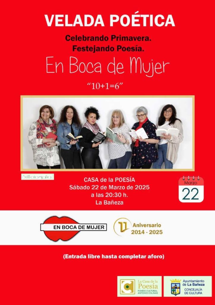 La Casa de la Poesía de La Bañeza acogerá el próximo sábado 22 de marzo, a las 20:30 horas, un evento especial en honor a la poesía. En esta ocasión, el colectivo poético «En Boca de Mujer» celebrará su 11º aniversario desde su creación, reafirmando su compromiso con la palabra y la expresión literaria.
