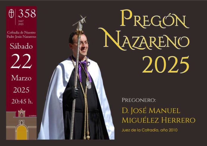 Este año, el honor de pronunciar el pregón recaerá en el Hermano José Manuel Miguélez, quien, con su testimonio, nos transportará a momentos inolvidables de su trayectoria. Será una ocasión especial para rememorar las anécdotas de su judicatura y los años que vivió en el Cabildo, reviviendo con emoción las historias que han marcado su paso por la hermandad.