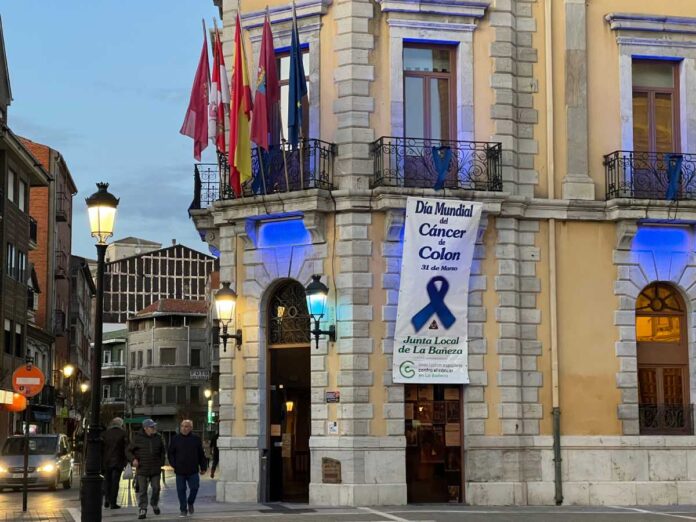 Como parte de la campaña de concienciación, desde el jueves 20 de marzo de 2025, la fachada del Ayuntamiento de La Bañeza luce un cartel alusivo, lazos azules y una iluminación especial en color azul en apoyo a la lucha contra el cáncer de colon.