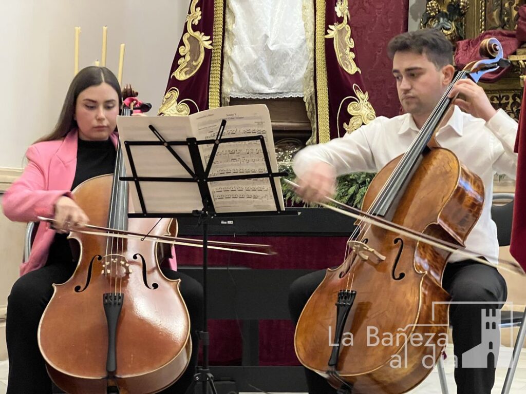 Los Hermanos Alejandro y Paula Pérez Díez ofrecieron una actuación inolvidable, interpretando piezas con violonchelos y piano que cautivaron al público presente. La calidad de su música creó momentos de profunda emoción, lo que les valió un reconocimiento por parte del Juez de la Cofradía, Carlos Ortega y Mayordomo Diputado, Cristina Quiñones Prieto, quienes les entregaron un recuerdo por su valiosa participación en el evento.