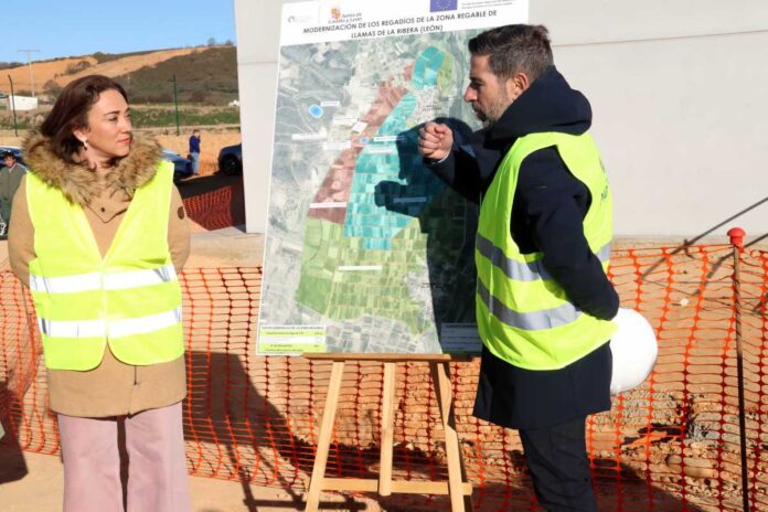 Las obras contemplan la toma de agua del río Luna, la construcción de las balsas -una de regulación y otra de riego por gravedad-, la estación de bombeo y el parque fotovoltaico para suministrar energía, “en un magnífico ejemplo de inversiones sostenibles que son eficientes en el consumo de agua y energía”.