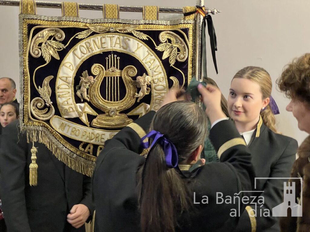 Carmen Calvo, coordinadora de la Banda, destacó la importancia de los ensayos y el esfuerzo constante durante todo el año, haciendo una especial mención a los padres de los músicos y agradeciendo al Cabildo y la Fundación Conrado Blanco por su apoyo. Como gesto de gratitud, se colocó un crespón con el nombre de la Fundación Conrado Blanco.