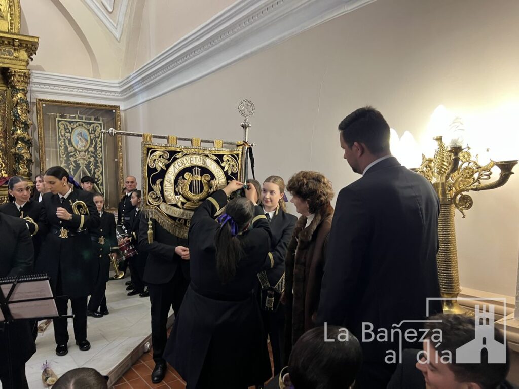 Otro momento emotivo fue la entrega de un recuerdo a Lucía Sevilla Castrillo, quien celebra su quinta Semana Santa junto a la banda.