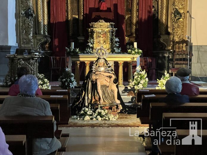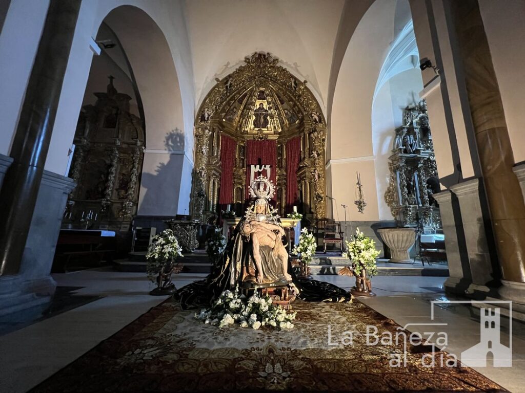 Hoy jueves, la Iglesia de El Salvador acoge el solemne besamanos a Nuestra Señora de las Angustias, una cita muy esperada por los fieles bañezanos, que desde las 10:00 hasta las 18:00 horas podrán acudir para mostrar su devoción a la imagen titular de la cofradía.