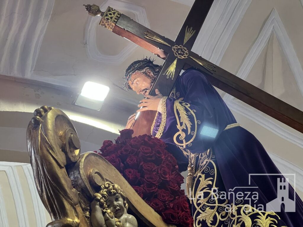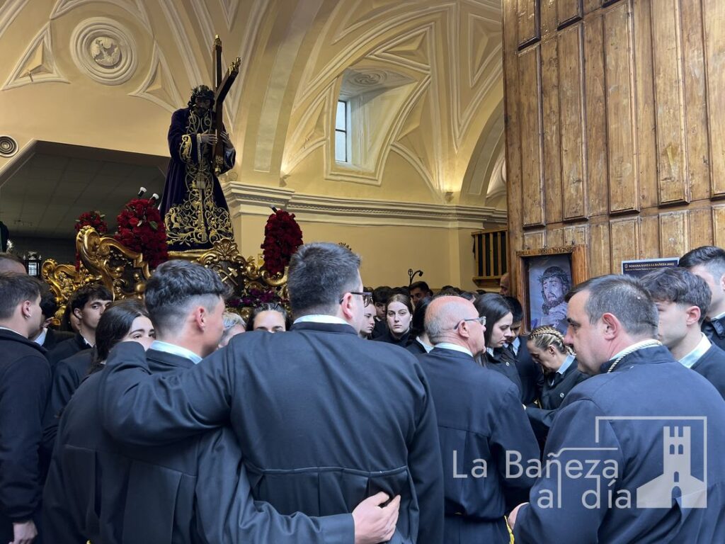 Los rostros de los presentes reflejaban una mezcla de profunda devoción y tristeza. Para muchos, era un momento largamente esperado durante todo el año: llevar a hombros al Nazareno por las calles de La Bañeza. Sin embargo, aunque la procesión no salió, la emoción del momento fue más que evidente.