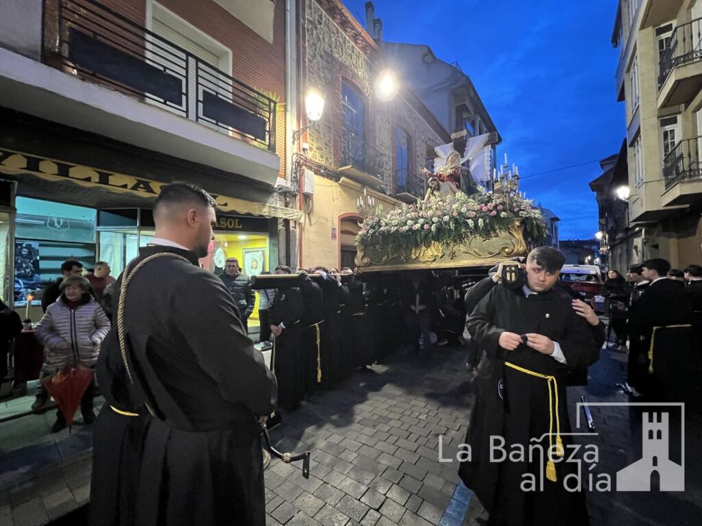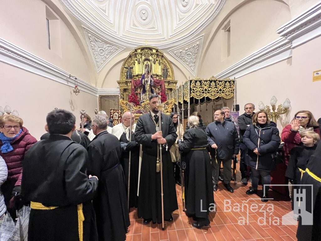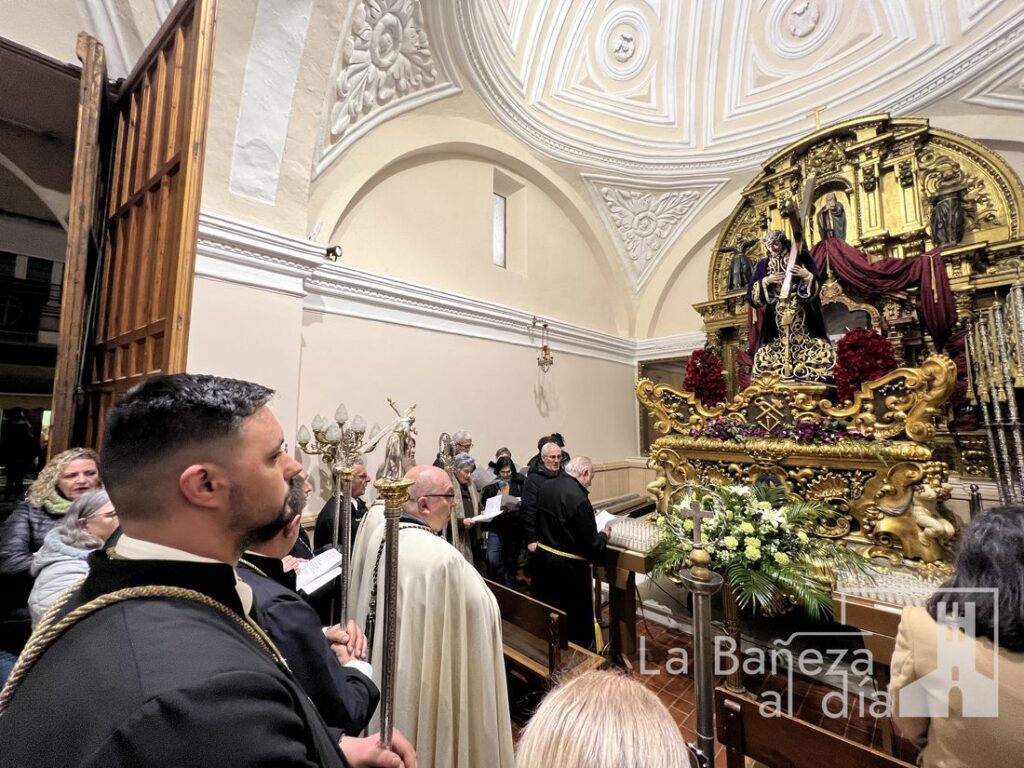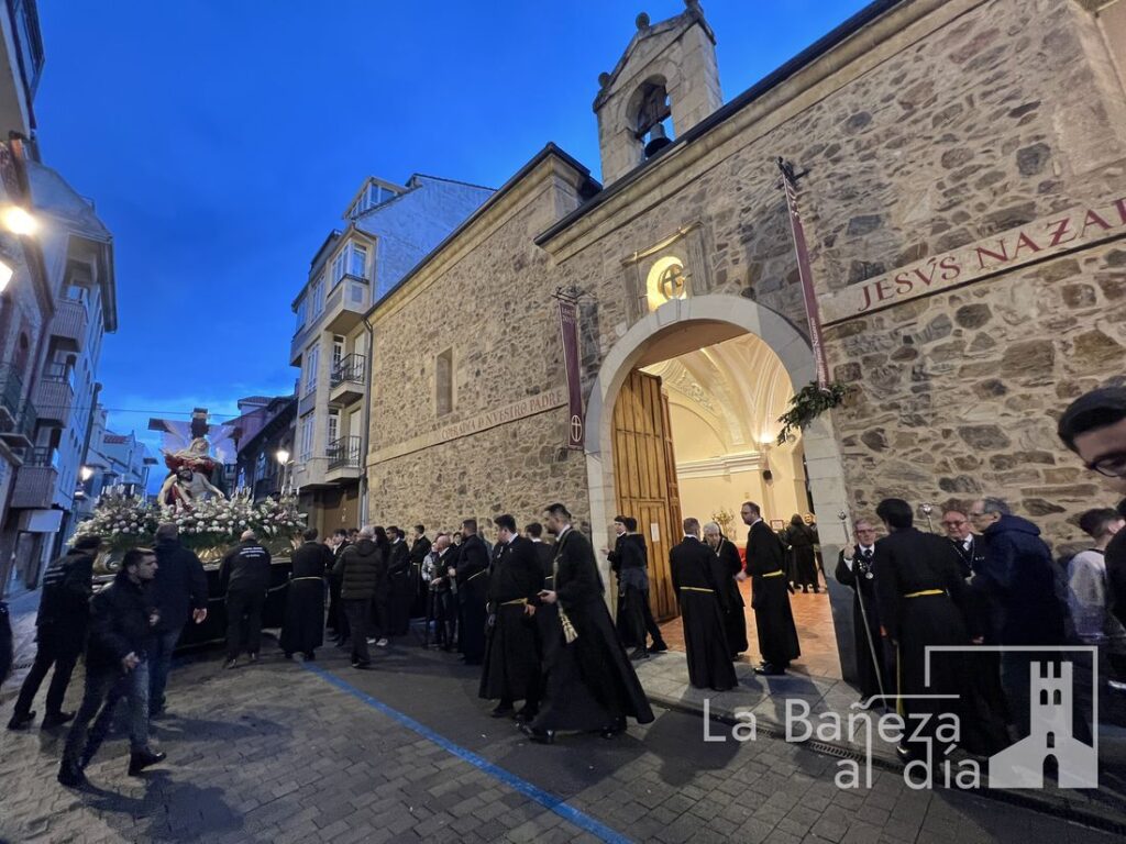 A pesar del contratiempo, una gran cantidad de fieles acompañaron el rezo con fervor, elevando sus plegarias y entonando cánticos tradicionales como el «Sube el Nazareno» y el himno de la cofradía. Una vez más, la meteorología interrumpió el normal desarrollo de los actos procesionales en esta Semana Santa bañezana, declarada de Interés Turístico Regional.