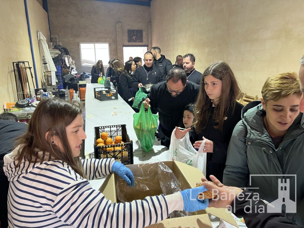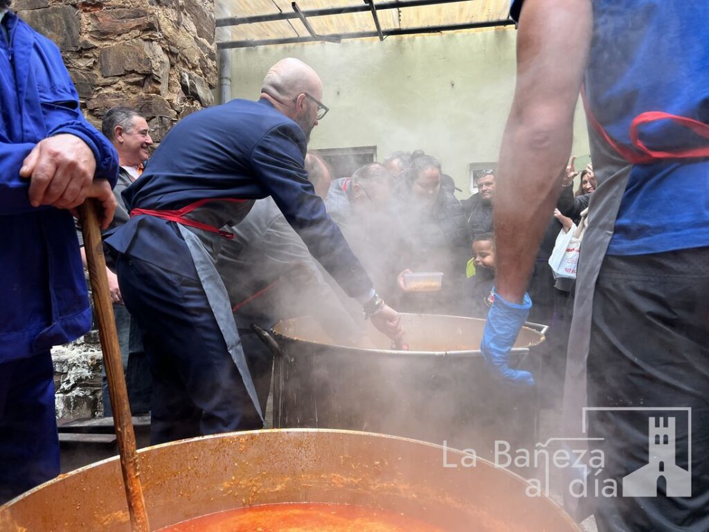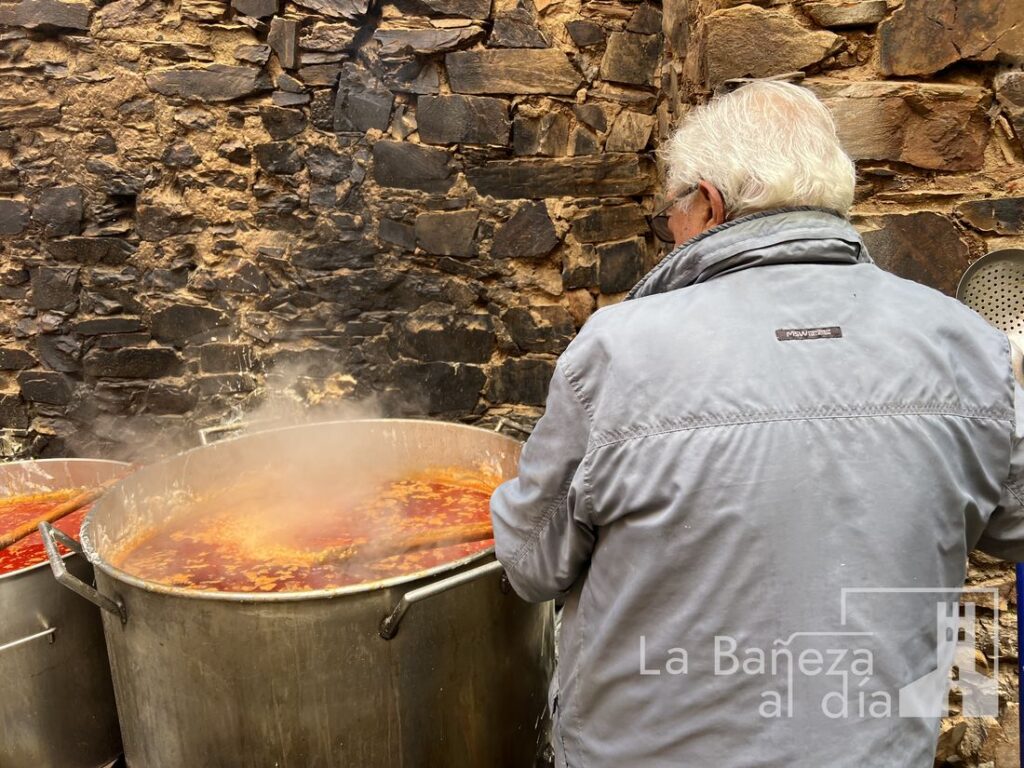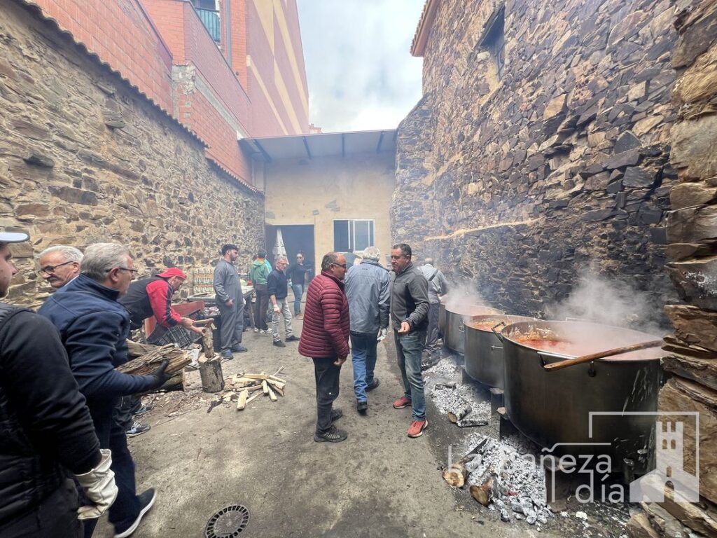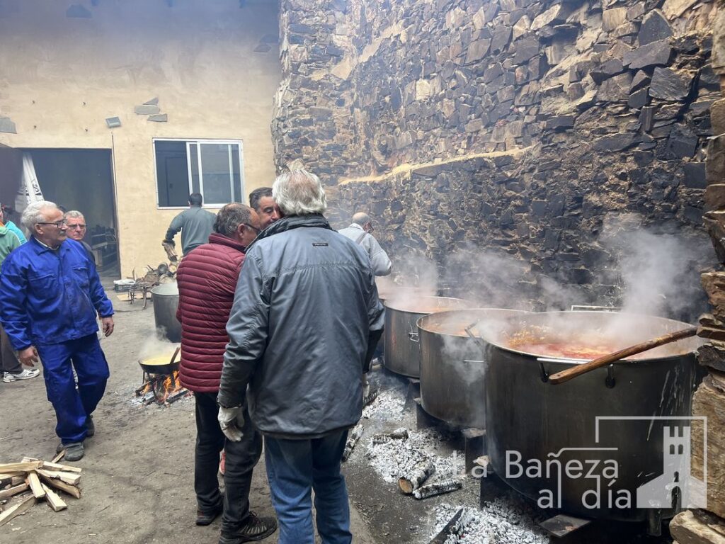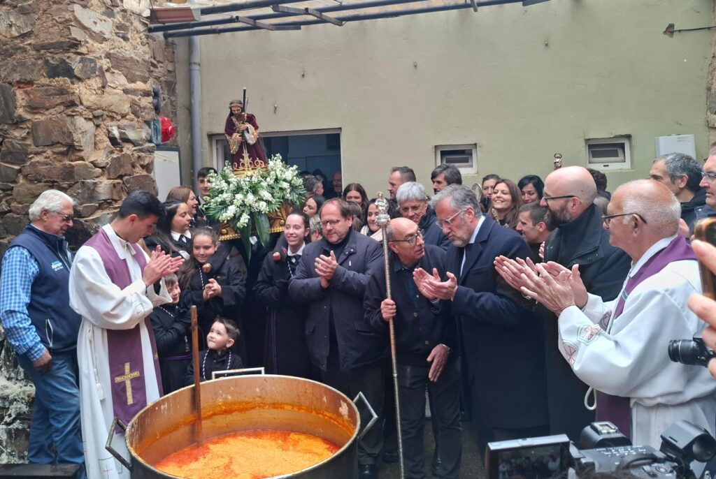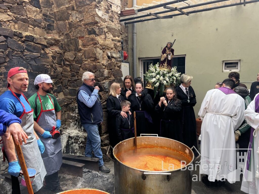 Antes del esperado reparto del potaje, el sacerdote Álvaro Lobato ofreció una oración por los miembros de la cofradía, tanto presentes como ausentes, y procedió a bendecir el guiso al son del tradicional cántico popular: