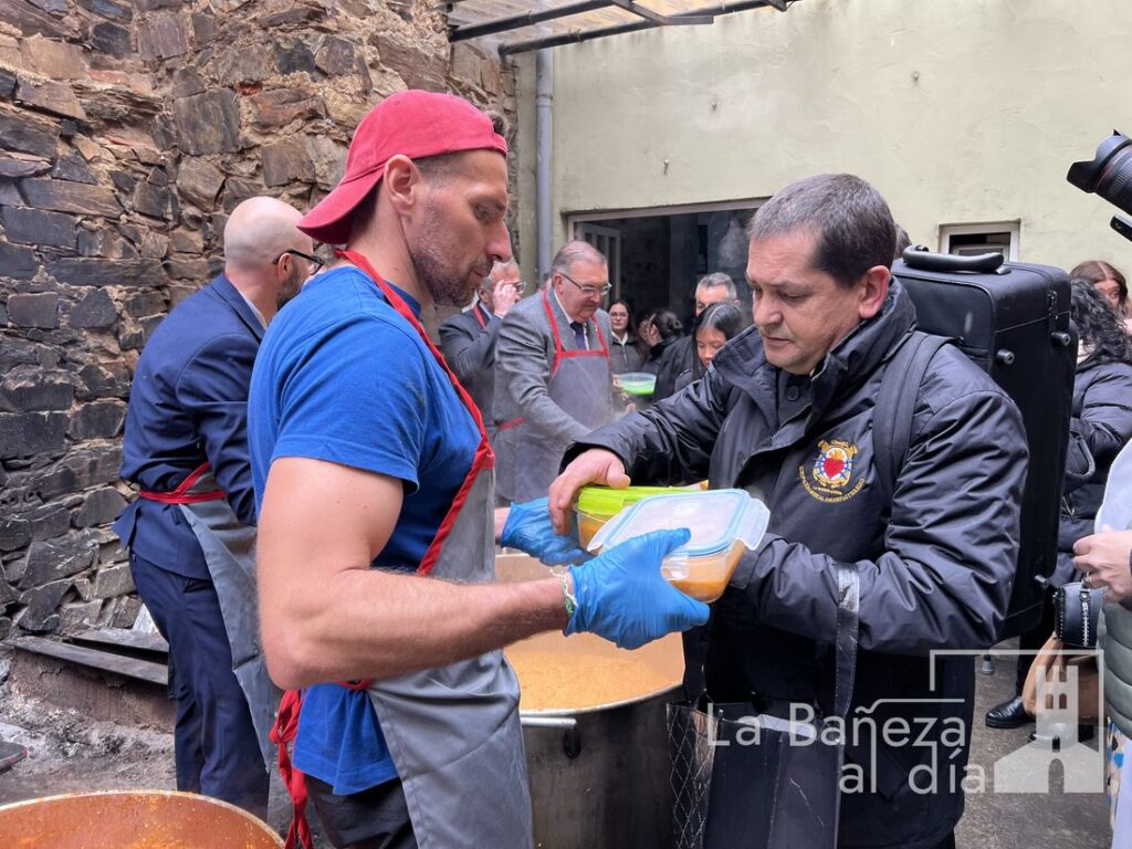 Ni la lluvia pudo empañar este Miércoles Santo la centenaria tradición del Santo Potajero, que cada año organiza la cofradía de Nuestra Señora de las Angustias y Soledad de La Bañeza.