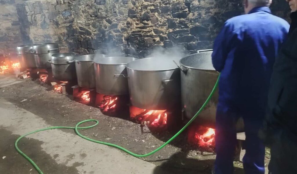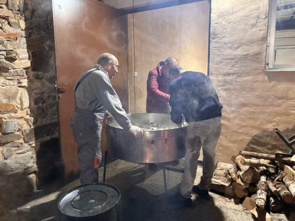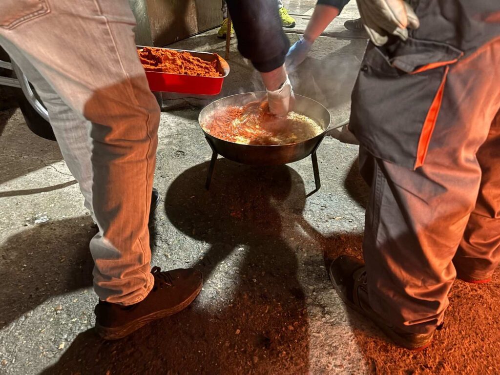 Todos los ingredientes se cocinan como antaño, con leña, en un pequeño patio anexo a la capilla de la cofradía, manteniendo vivo el espíritu de sus fundadores.