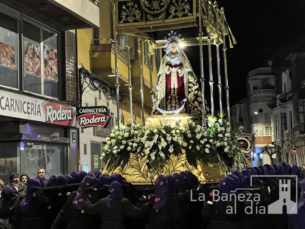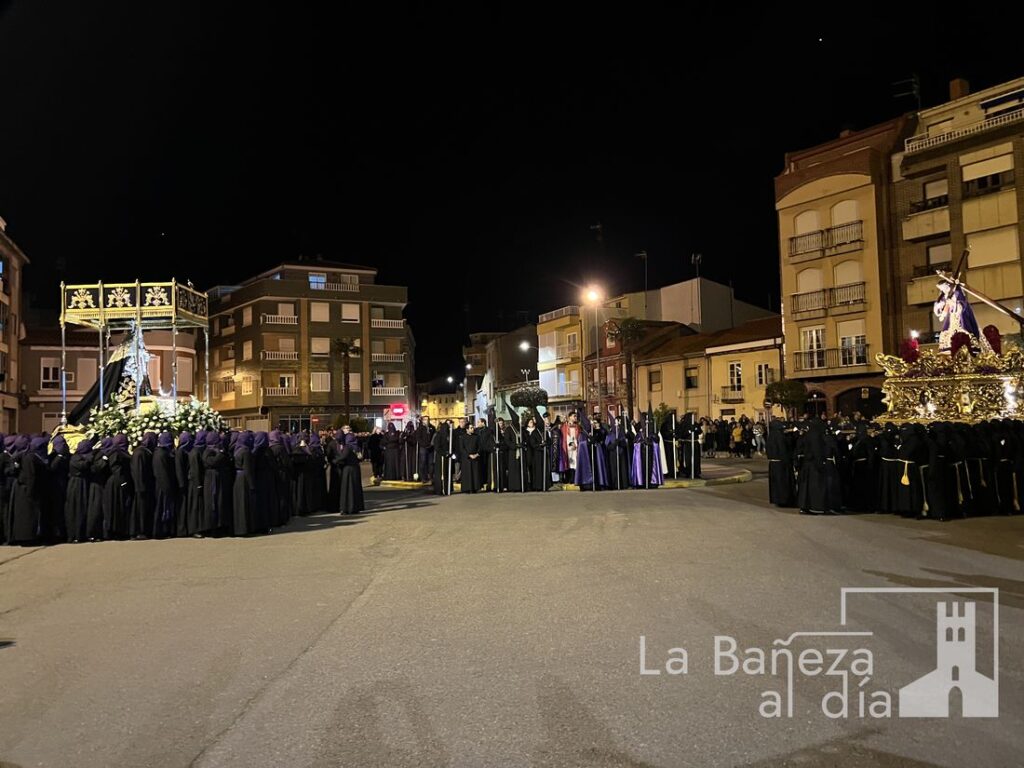 La Bañeza vivió este Jueves Santo uno de los momentos más emotivos de su Semana Santa con la tradicional Procesión del Encuentro, organizada por la Cofradía de Nuestro Padre Jesús Nazareno y la Cofradía de Nuestra Señora de las Angustias y Soledad.
