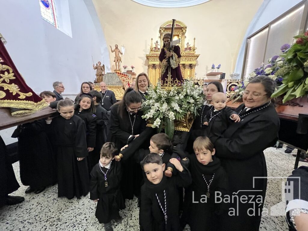 La mañana estuvo dedicada a los más pequeños de la cofradía, quienes vivieron una jornada especial marcada por la ilusión y la devoción. El protagonismo recayó en las imágenes del Santo Potajero, la Virgen de Gracia y Jesús Crucificado, con las dos primeras siendo incluso bailadas por los niños, que demostraron su entusiasmo y entrega en cada movimiento.