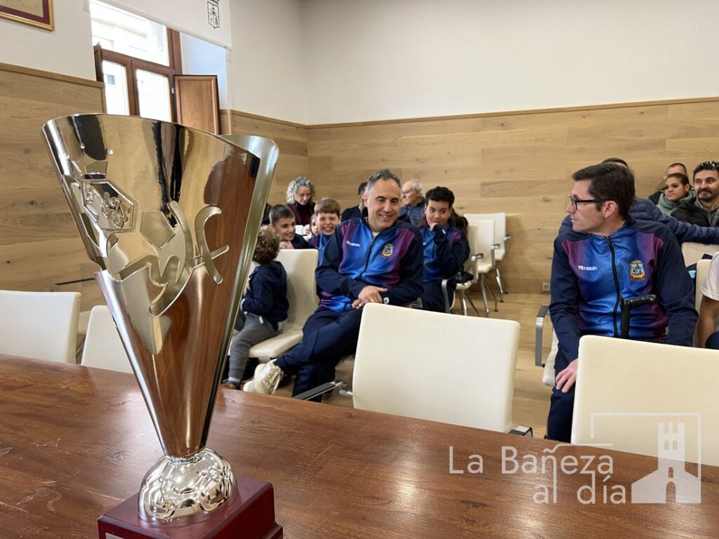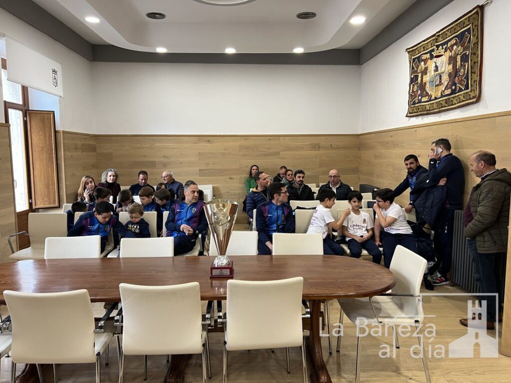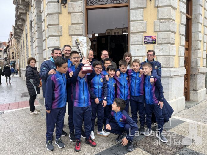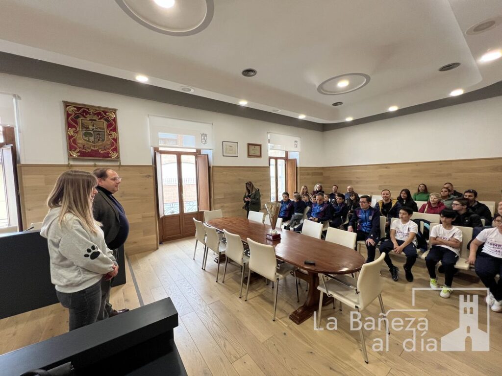 Los jóvenes jugadores, dirigidos por Laca y Servando, fueron homenajeados esta mañana en el Ayuntamiento de La Bañeza. El alcalde, Javier Carrera, y la concejala de Deportes, Laura Gallego, recibieron al equipo con palabras de felicitación y agradecimiento, destacando no solo el esfuerzo de los jugadores, sino también el compromiso de padres, entrenadores y miembros del club que hacen posible este tipo de logros.