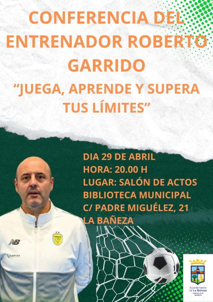 Continuando con el calendario de actividades organizadas con motivo de la Semana del Deporte, la Biblioteca Municipal de La Bañeza será este martes 29 de abril, a las 20:00 horas, el lugar donde se celebre una conferencia a cargo del entrenador Roberto Garrido.