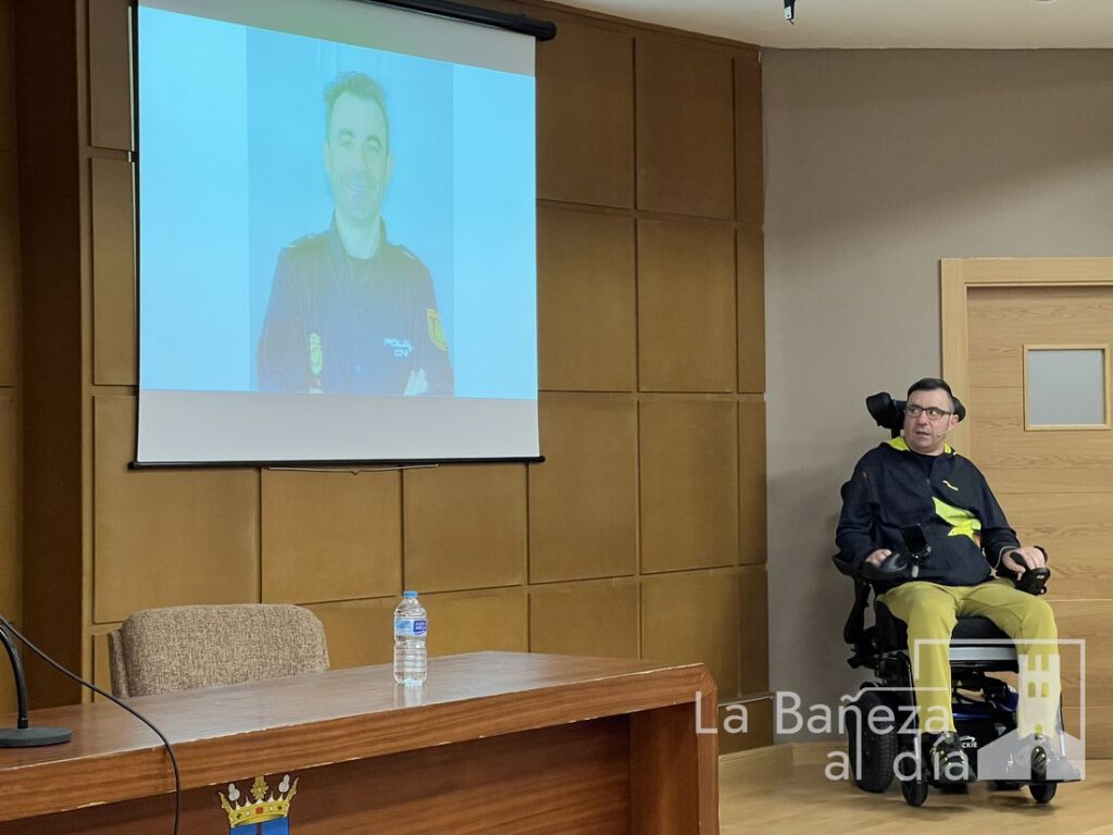 Antes del inicio de la charla, el alcalde Javier Carrera y la concejala de Deportes, Laura Gallego, ofrecieron unas palabras llenas de admiración y afecto. “Agradecerte que hayas venido a tu casa a explicar tu experiencia y a transmitirnos las enseñanzas que la vida nos va dando”, expresó Carrera. Por su parte, Gallego destacó el perfil de Ismael: «Bañezano, Policía Nacional, gran deportista y mejor persona». Presidente del BTT La Badana y miembro de Calentadas Trail Running de Ponferrada. Sus inicios en este mundo se remontan al año 2000 cuando por una lesión que le impedía correr, comprobó que en bicicleta no le dolía y así empezó a recorrer caminos de la Valduerna. También le apasionaba correr por la montaña y subir picos desconocidos, por desgracia, en octubre del 2023 sufrió un grave accidente practicando ciclismo.