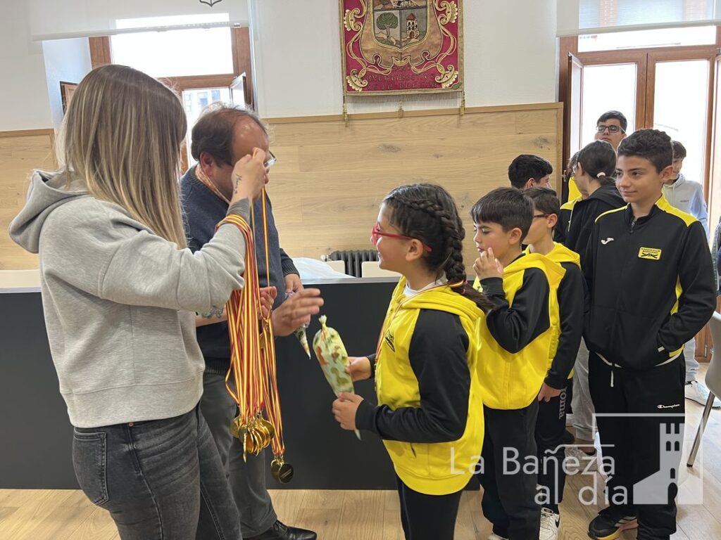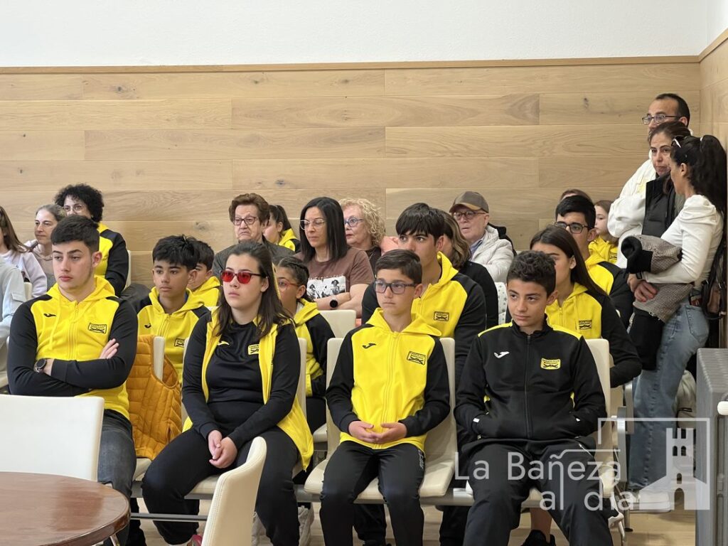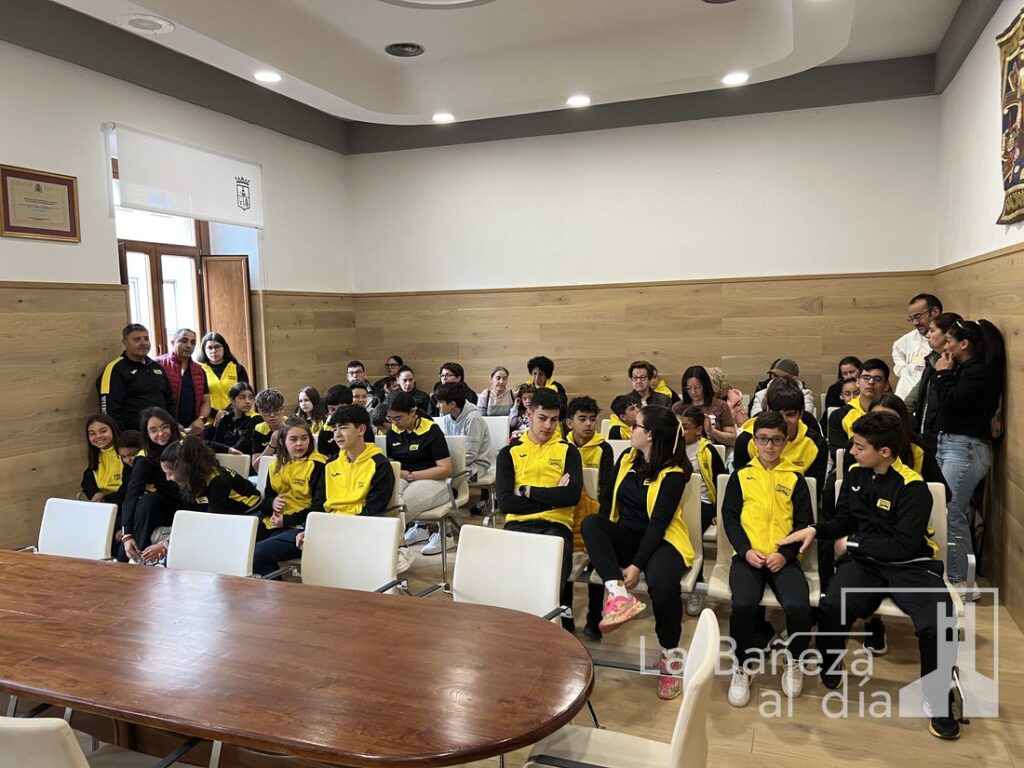 El alcalde de La Bañeza, junto a la concejala de Deportes, ha recibido esta mañana en el salón de plenos del Ayuntamiento al Club Bañezano de Karate en un acto de reconocimiento a su destacada trayectoria y los recientes éxitos cosechados por sus jóvenes deportistas.
