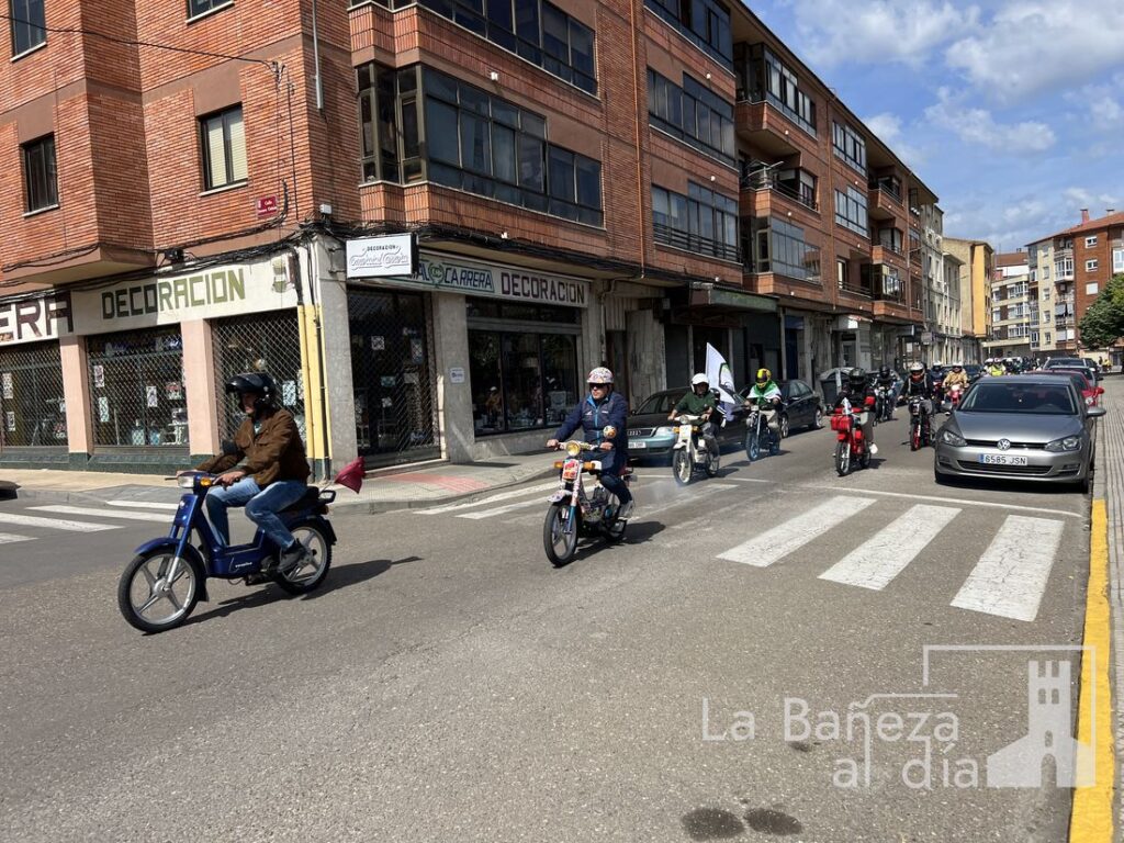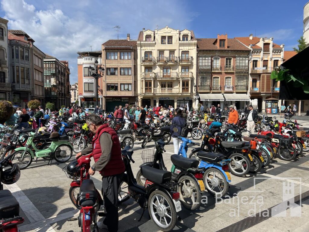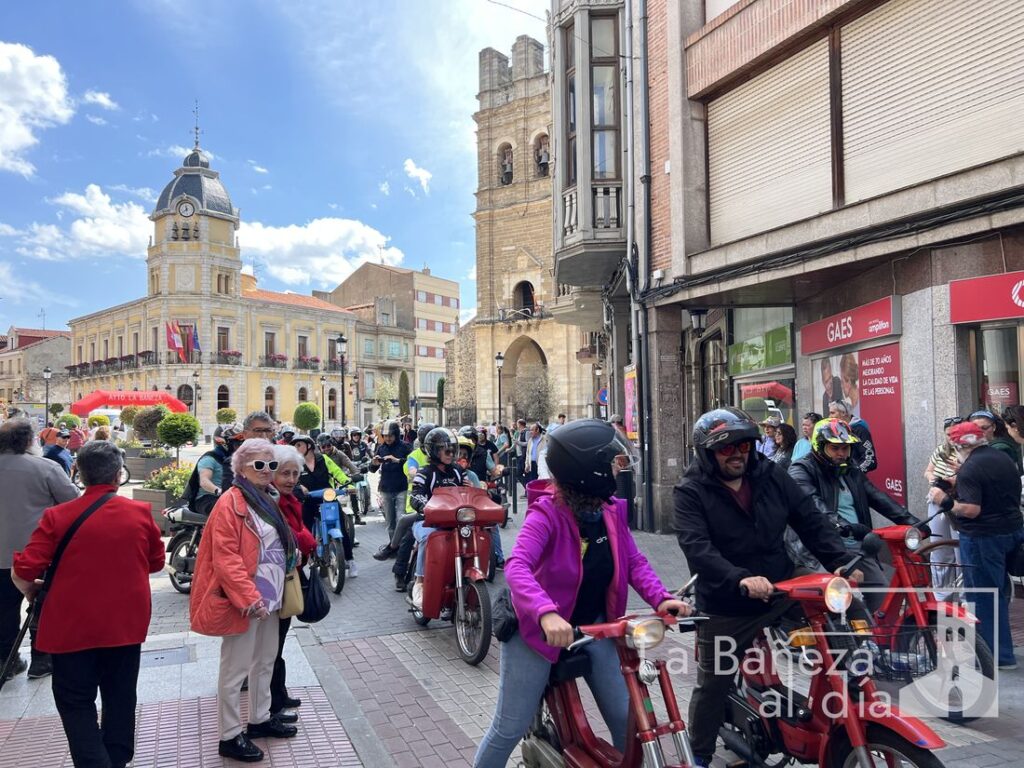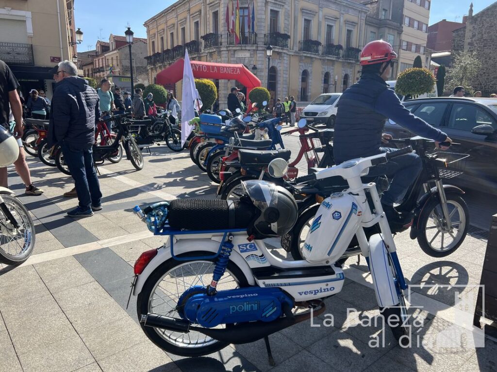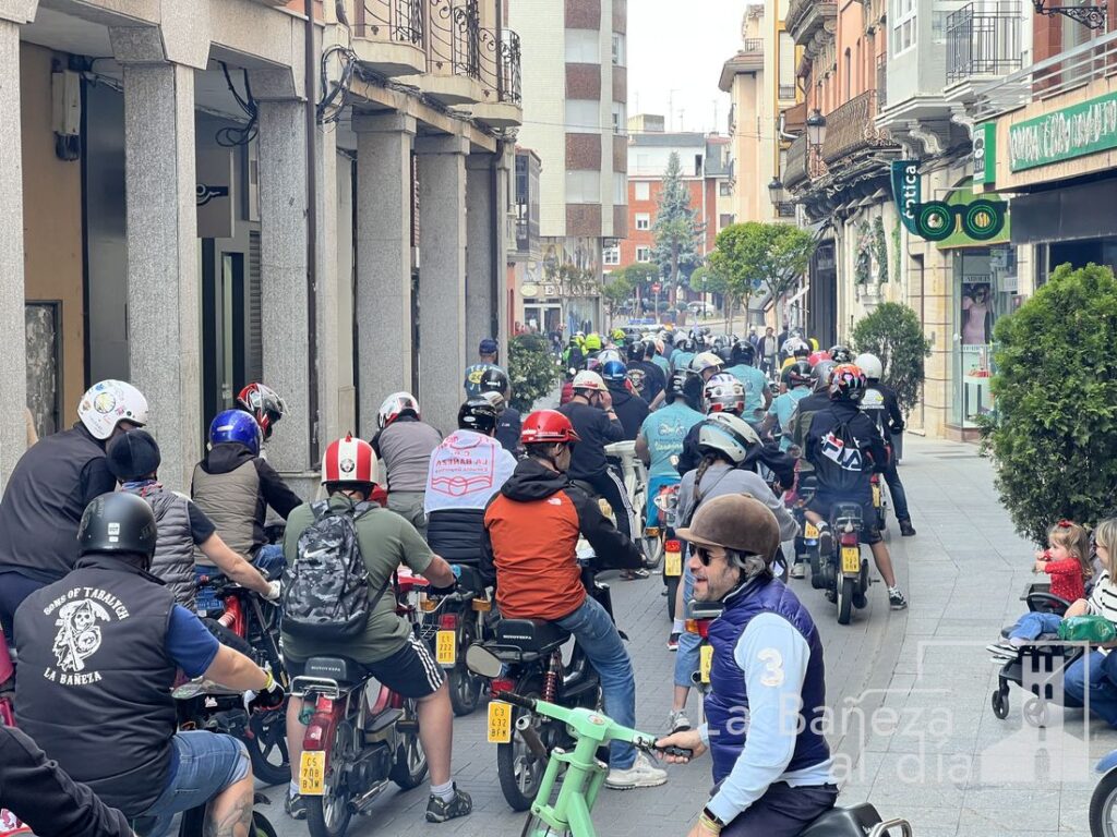 La Bañeza se ha convertido este fin de semana en punto de encuentro nacional para los amantes del emblemático ciclomotor Vespino, con motivo de la celebración de la XV Reunión Nacional organizada por la Asociación Vespino La Bañeza 303 en colaboración con el Ayuntamiento de La Bañeza. Más de 300 participantes tomaron la salida en la mañana del sábado desde el Polideportivo Municipal, en un evento que ha reunido a aficionados llegados de toda España, incluidas las Islas Canarias.