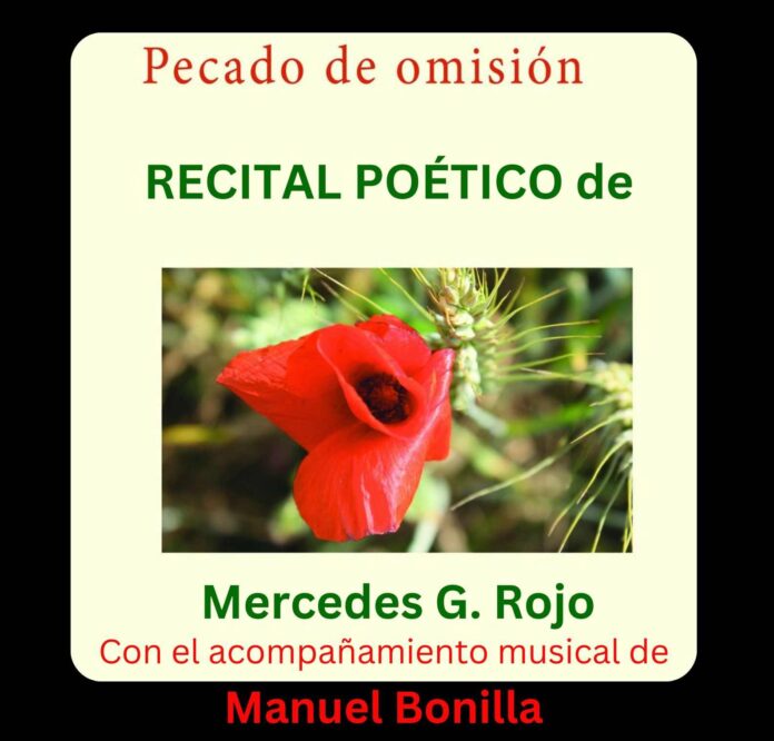 El próximo sábado 31 de mayo, a las 19:00 horas tendrá lugar en La Comunal, del Val de San Lorenzo, el recital poético–musical Pecado de omisión, sobre textos poéticos de Mercedes G. Rojo, que serán desgranados ante el público por la propia autora, con una original puesta en escena y la música de la guitarra de Manuel Bonilla, que acompañará una vez más a la poeta para remarcar la fuerza de sus versos, textos poéticos que concentran.
