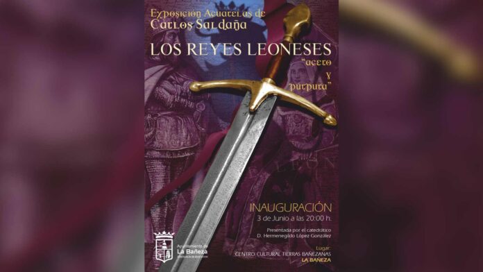 Del 3 de junio al 11 de julio, la sala de exposiciones del Centro Cultural «Tierras Bañezanas» acogerá la muestra «Acero y púrpura», una exposición del artista Carlos Saldaña dedicada a los Reyes Leoneses, organizada por la Concejalía de Educación del Ayuntamiento de La Bañeza.