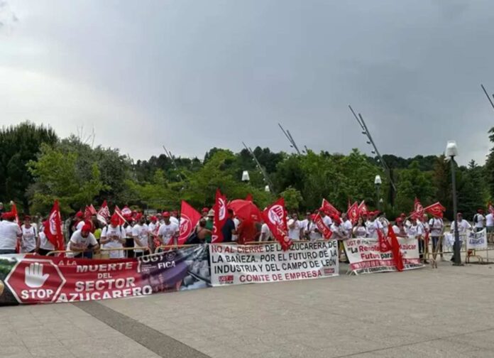 Un centenar de trabajadores de todos los centros de Azucarera ha reclamado al presidente de la Junta, Alfonso Fernández Mañueco, que utilice «todos los medios para revertir el cierre» del centro de la compañía en La Bañeza (León).