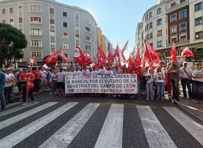 Unas 2.000 personas han mostrado su apoyo este viernes a los trabajadores de la fábrica Azucarera de La Bañeza en una manifestación que ha comenzado pasadas las 19.00 horas frente a las sedes de UGT y CCOO en León capital, tras el anuncio del cierre de la planta de la comarca bañezana y ERE planteado por la empresa, AB Azucarera Iberia.