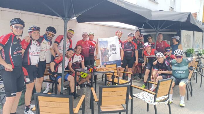 Tras un descanso en el bar Barros, el ya nutrido pelotón de 25 ciclistas afrontó el último tramo hasta llegar a Ponferrada. Un emotivo paseo final por la ribera del Sil les condujo hasta Fuentes Nuevas, donde Ismael, junto a amigos y familiares, les esperaba con una cálida y entusiasta bienvenida.