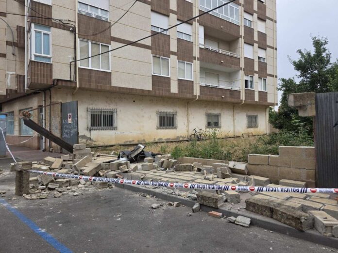 Uno de los incidentes más destacados tuvo lugar en la calle Magistrado García Calvo, donde un muro colapsó y cayó sobre la acera. La Policía Local acudió rápidamente al lugar y procedió a precintar la zona por seguridad.