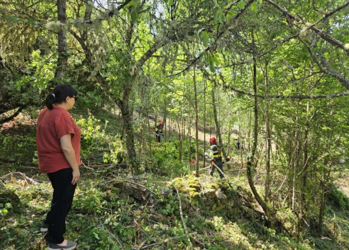 La diputada de Transición Ecológica, Lucía Osorio, ha visitado este lunes en Langre, Berlanga del Bierzo, a una de las cuadrillas contratadas para conocer de primera mano los trabajos que realizan.
