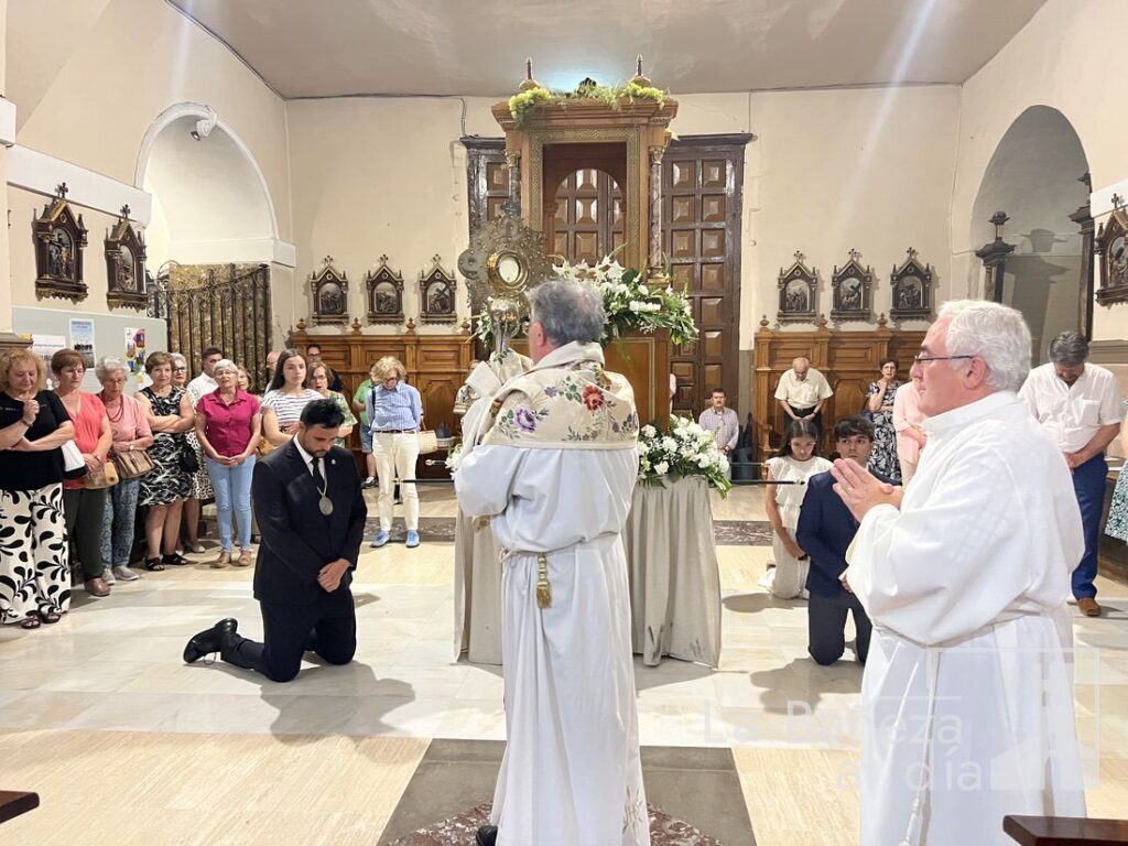 La devoción y el esfuerzo de las cofradías se hizo igualmente visible. Tanto la Cofradía de Nuestro Señor Jesús Nazareno como la Cofradía de la Santa Vera Cruz decoraron sus puertas para la ocasión. La primera incluso preparó un altar y alfombras, siguiendo la tradición de engalanar el recorrido del Santísimo.