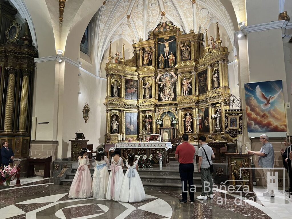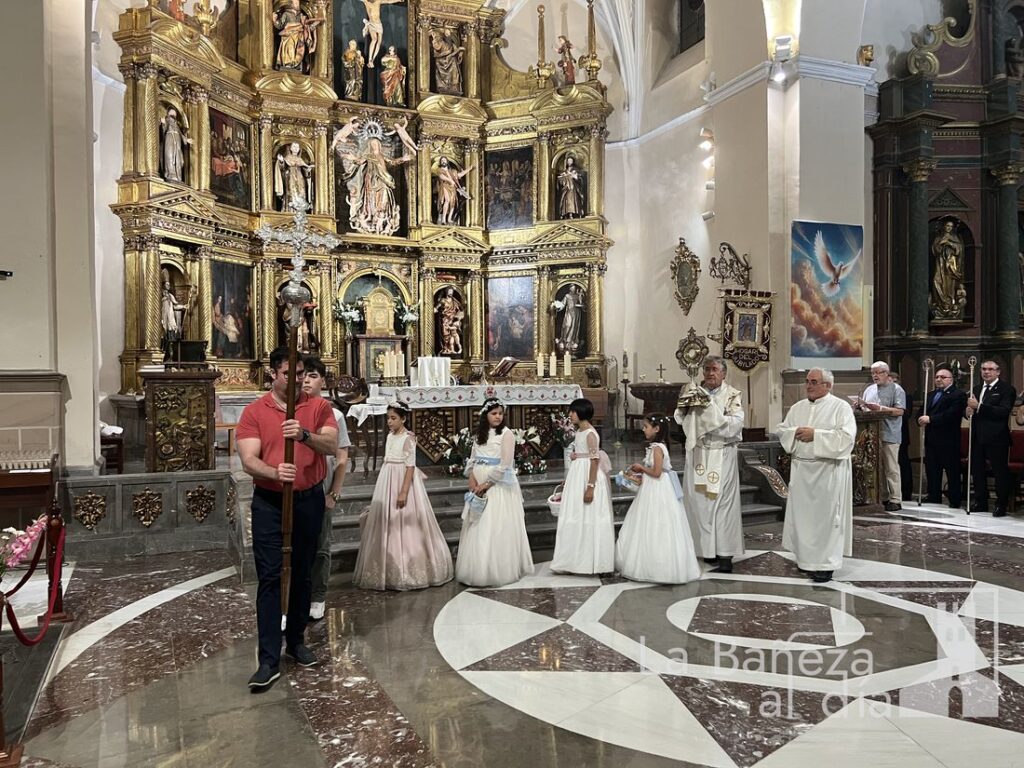 A pesar de ello, la celebración religiosa no se canceló por completo. La comunidad se reunió en el interior de la Iglesia de Santa María, donde tuvo lugar una pequeña procesión, manteniendo así el sentido litúrgico y espiritual del acto. La misa solemne contó con la presencia de representantes de todas las cofradías de la ciudad, autoridades locales, fieles y los familiares de las niñas que este año recibieron su Primera Comunión.