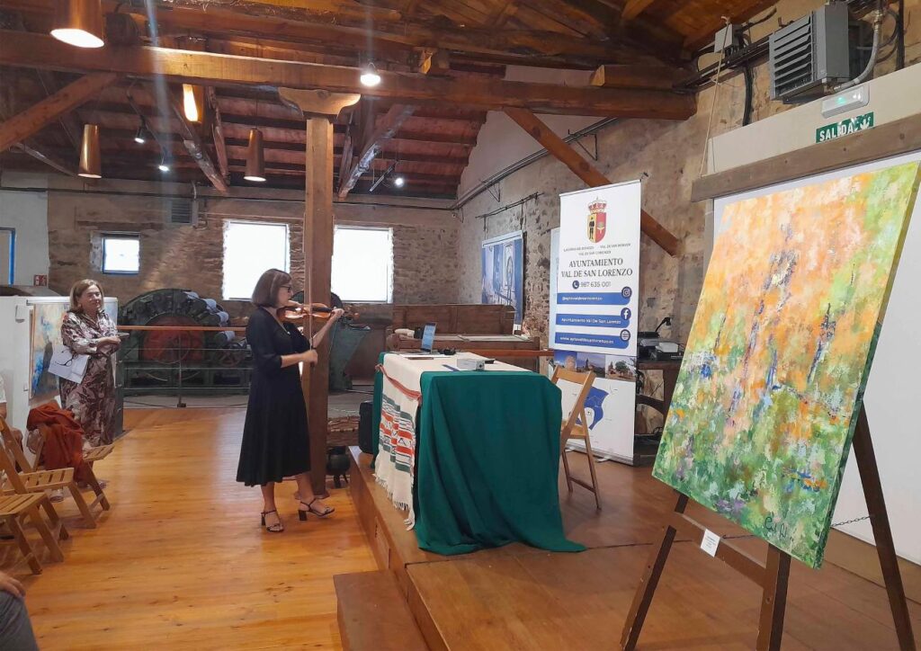 Durante la inauguración, Dulce Tascón Fernández, igualmente deleitó a los aistentes con una actuación musical, interpretando varias piezas con su violín, enriqueciendo así la tarde con una fusión de arte visual y musical, y en un entorno inigualable, rodeados de tradición e historia textil.