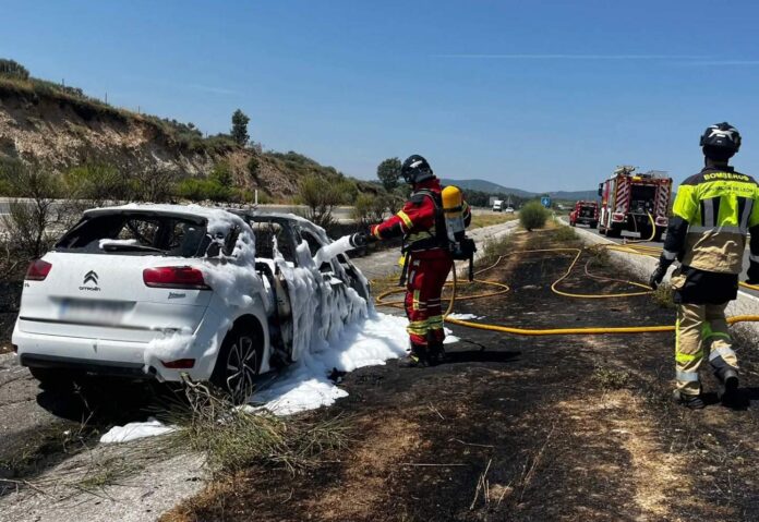 El fuego afectó por completo al vehículo siniestrado y se propagó rápidamente a la vegetación de la mediana. Gracias a la rápida y eficaz actuación de los equipos desplazados al lugar, se logró sofocar el incendio, evitando su extensión a otras zonas y garantizando la seguridad del tráfico en la vía.